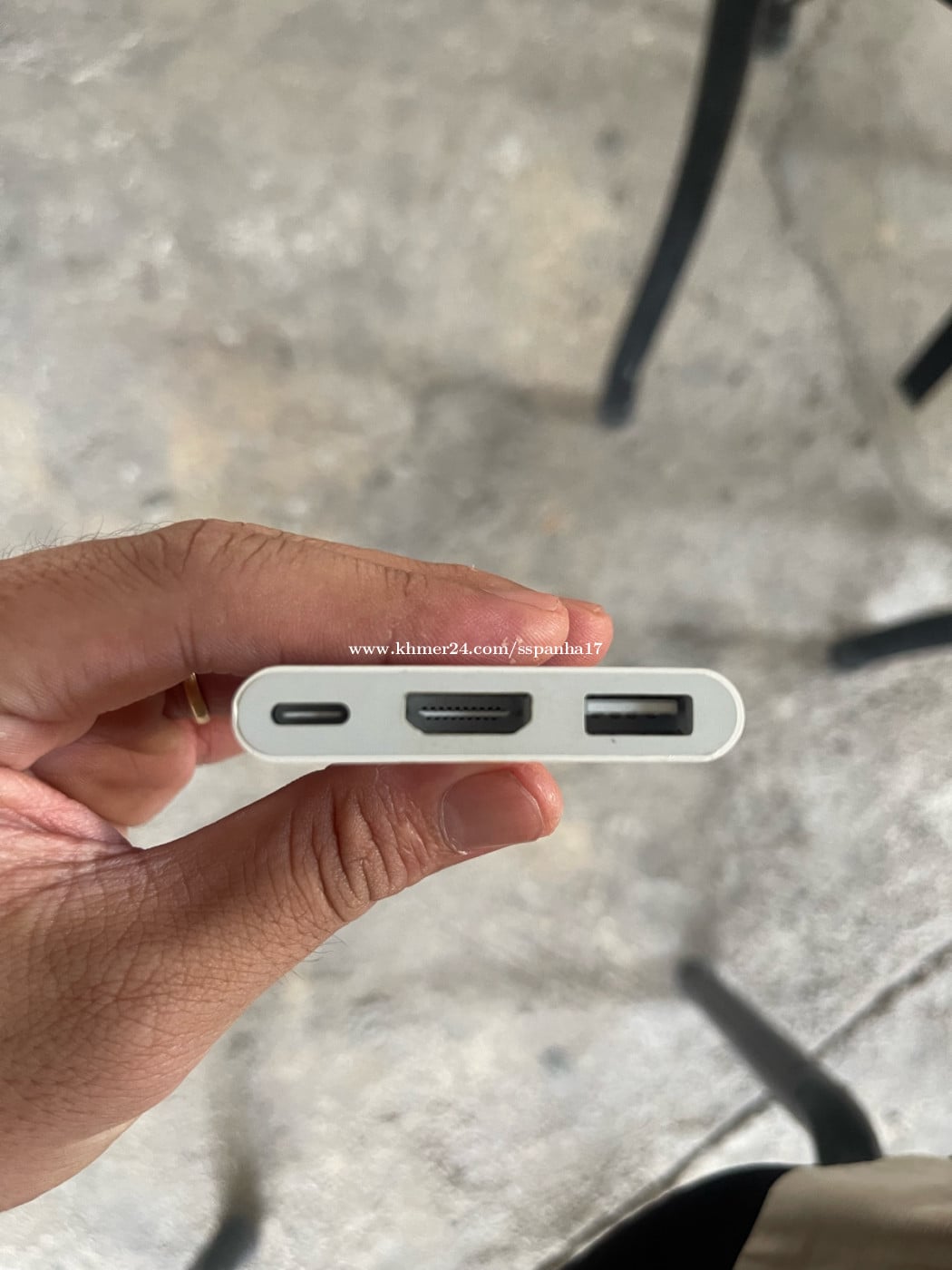 លក់ Apple USB-C Digital AV Multiport Adapter (Model A1621, EMC 2877) (មានស្លាក Designed by Apple in California)។ បានប្រើម្តងរួច (សាកល្បងប៉ុណ្ណឹង) ស្ថានភាពល្អដូចថ្មី ដំណើរការល្អគ្មានបញ្ហា។ • Ports: USB-C (input), HDMI (output សម្រាប់ TV/monitor 4K@30Hz), USB-A (សម្រាប់ USB device) • Compatible: MacBook, MacBook Pro/Air, iPad Pro, iPhone 15 series ជាមួយ USB-C • Features: Mirror/extend screen ទៅ HDMI, charge ឬ connect USB ក្នុងពេលតែមួយ, quality ដើម Apple រឹងមាំ • Condition: ប្រើម្តងរួច ស្ថានភាពល្អ 95-100% មាន cable ពេញ មិនមានស្នាមច្រើន • សម្រាប់ប្រើ: បញ្ចាំងវីដេអូ ឬ presentation ទៅ TV ឬ projector, connect USB ផ្សេងទៀត ងាយស្រួលប្រើ!
