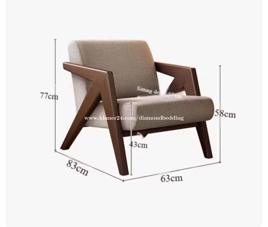 Armchair កៅអីប៉ុងអង្គុយធំ ពណ៏Grey មានផ្ទៃប៉ុងផ្អែកក្រាស់ ដៃនិងជើងឈើជ្រុង ស្រួលអង្គុយ រឹងមាំ មានផាសុភាព