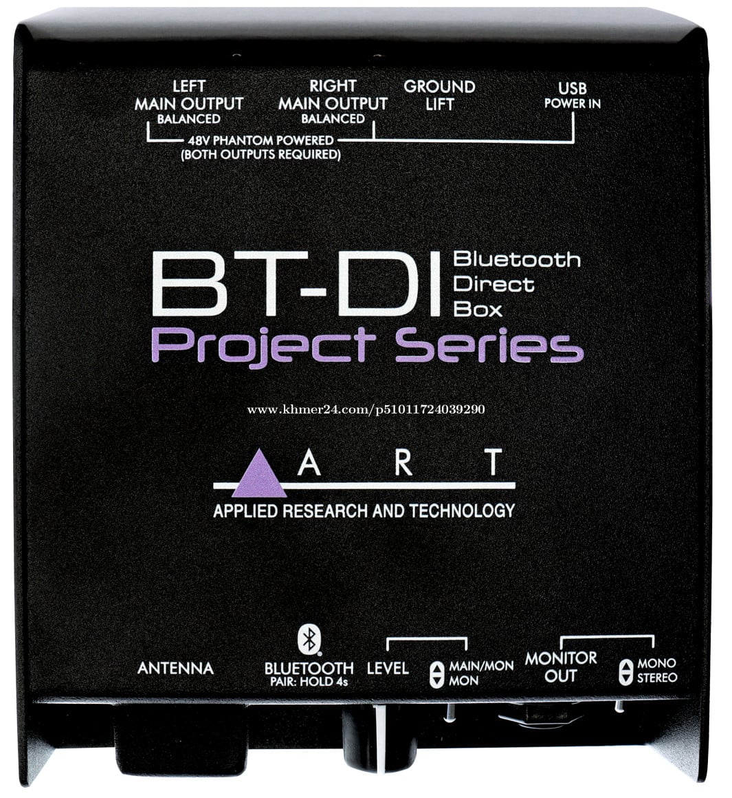 ART BT-DI Bluetooth Direct Box Features Bluetooth® 5.0 Receiver Up to 100 ft / 30 m Range (Line of Sight) Transformer-Isolated XLR Outputs Line / Headphone Monitor Out with Mono / Stereo Switch Fixed or Variable Main Output Level Level Control Adjusts Monitor or Main + Monitor Volume Ground Lift Powered by USB or Phantom Power Rugged Steel Case