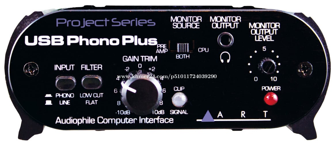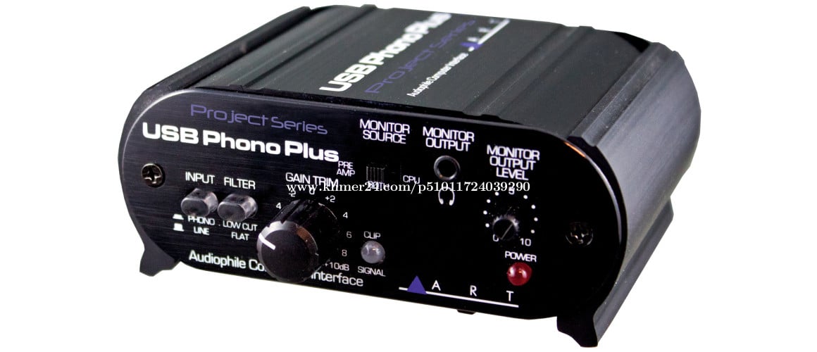 ART USB Phono Plus Phono Preamp with USB Key Features Phono Preamp with USB Output Ideal for Digitizing Vinyl Records Optical Digital I/O Connections S/PDIF Digital Input Analog Line Output & Headphone Output Gain Trim and Monitor Level Flat & Low-Cut Filter Switch Line & Phono Input Switch
