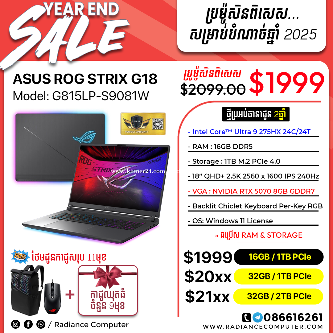 មានលក់នៅរេឌានកុំព្យូទ័រ រាល់ការជាវ Laptop និងទទួលបាន ការតម្លើង Software+ Game ឥតគិតថ្លៃ Lifetime ================== ☎️𝐂𝐚𝐥𝐥 𝐍𝐨𝐰: 086616xxxClick To Call- 011616xxxClick To Call 👉𝐖𝐨𝐤𝐢𝐧𝐠 𝐓𝐢𝐦𝐞: 8:00am - 6:30pm (Mon-Sun) 👉𝐓𝐢𝐤𝐓𝐨𝐤: https://www.tiktok.com/@radiancecomputer 🌐𝐖𝐞𝐛𝐬𝐢𝐭𝐞: https://www.radiancecomputer.com/#promotion 💬𝐓𝐞𝐥𝐞𝐠𝐫𝐚𝐦: 086616xxxClick To Call https://t.me/radiancecomputerkh 👉𝐓𝐞𝐥𝐞𝐠𝐫𝐚𝐦 𝐂𝐡𝐚𝐧𝐧𝐞𝐥: https://t.me/radiancesale 🗺ទីតាំង: ក្រោយវិទ្យាល័យជាស៊ីមសាមគ្គី 🗺Map : https://maps.app.goo.gl/aqncarjP8VPA7vLE9