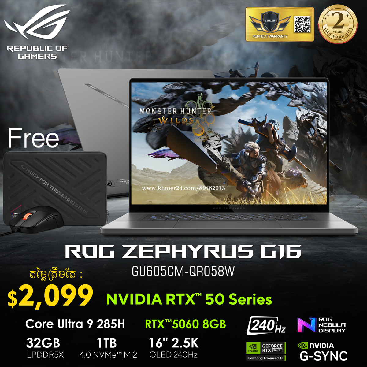 ASUS ROG ZEPHYRUS G16 2025 មានស្តុកស្រាប់ 2099$ 2Year Warranty Telegram 098377xxxClick To Call