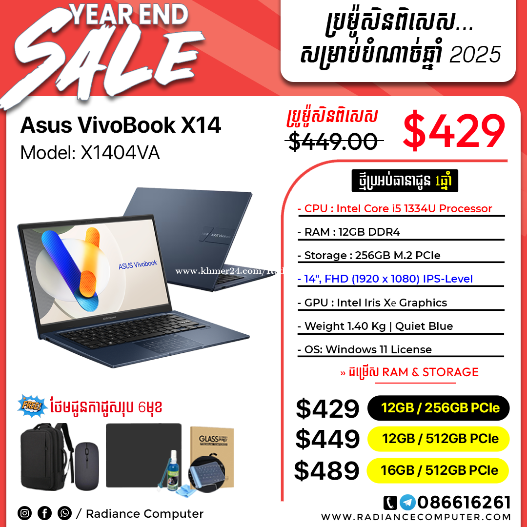 មានលក់នៅរេឌានកុំព្យូទ័រ រាល់ការជាវ Laptop និងទទួលបាន ការតម្លើង Software+ Game ឥតគិតថ្លៃ Lifetime ================== ☎️𝐂𝐚𝐥𝐥 𝐍𝐨𝐰: 086616xxxClick To Call- 011616xxxClick To Call 👉𝐖𝐨𝐤𝐢𝐧𝐠 𝐓𝐢𝐦𝐞: 8:00am - 6:30pm (Mon-Sun) 👉𝐓𝐢𝐤𝐓𝐨𝐤: https://www.tiktok.com/@radiancecomputer 🌐𝐖𝐞𝐛𝐬𝐢𝐭𝐞: https://www.radiancecomputer.com/#promotion 💬𝐓𝐞𝐥𝐞𝐠𝐫𝐚𝐦: 086616xxxClick To Call https://t.me/radiancecomputerkh 👉𝐓𝐞𝐥𝐞𝐠𝐫𝐚𝐦 𝐂𝐡𝐚𝐧𝐧𝐞𝐥: https://t.me/radiancesale 🗺ទីតាំង: ក្រោយវិទ្យាល័យជាស៊ីមសាមគ្គី 🗺Map : https://maps.app.goo.gl/aqncarjP8VPA7vLE9