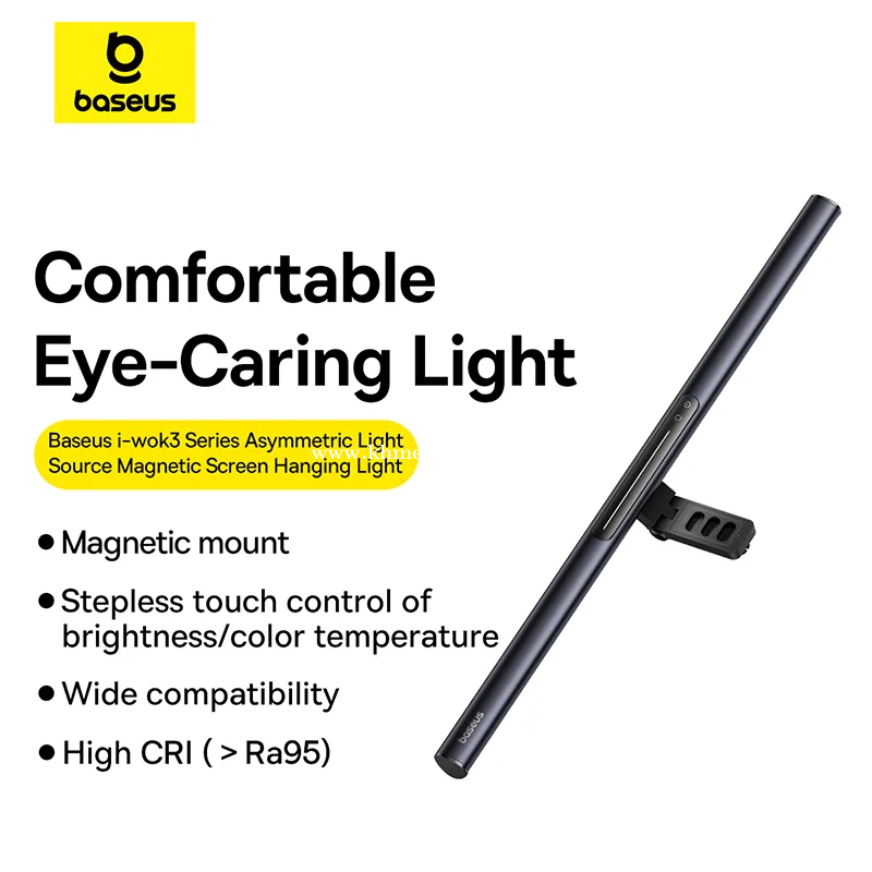 Upgrade your workspace with the Baseus i-Wok 3 — a premium asymmetric LED screen light designed to reduce eye strain and keep your desk clean and modern. The magnetic mount attaches directly to your monitor with no clamp required. Key Features: - Asymmetric lighting design to avoid screen glare - Adjustable brightness & color temperature (Warm / Natural / Cool) - Flicker-free, eye-care LED for long working hours - Magnetic mount for quick, clean installation - USB-powered, energy-efficient, and space-saving Perfect for work, study, reading, and late-night productivity.