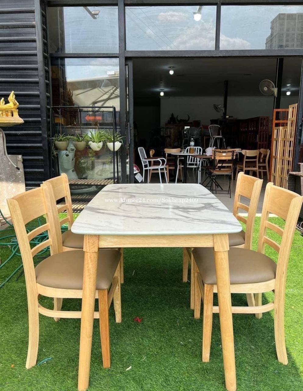 Beautiful Dining set with four chairs available in stock -Price 125$/Set -Table size 75*120cm height 75cm -New 100% -Free delivery in phnom penh -Free set up -Interested kindly contact :https://t.me/heap2409