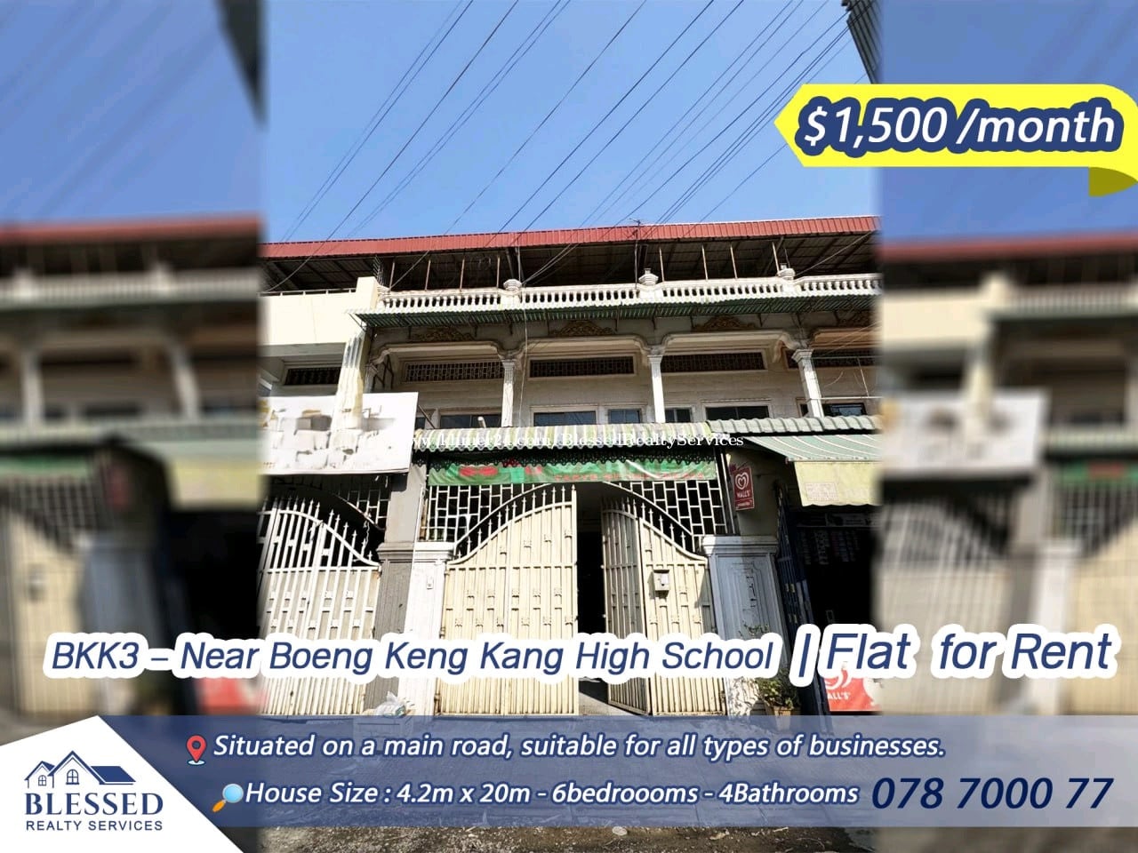BKK3 โ Near Boeng Keng Kang High School ๐ Flat for Rent ๐ ๐ฒ Price: $1,500 / month โจ House size: 4.2m x 20m ๐ Bedrooms: 6 ๐ Bathrooms: 4 ๐ข Floors: 3 ๐ Location: Located on a main road, suitable for all types of businesses. BKK3๏ผ้ ่ฟๅดฉ่ฏๅบท้ซไธญ ๐ ๅ ฌๅฏๅบ็ง ๐ ๐ฒ ็ง้๏ผ 1,500็พๅ / ๆ โจ ๆฟๅฑๅฐบๅฏธ๏ผ 4.2็ฑณ x 20็ฑณ ๐ ๅงๅฎค๏ผ 6้ด ๐ ๅซ็้ด๏ผ 4้ด ๐ข ๆฅผๅฑ๏ผ 3ๅฑ ๐ ไฝ็ฝฎ๏ผ ไฝไบไธปๅนฒ้ไธ๏ผ้ๅๅ็ฑปๅไธ็จ้ใ ๐ Contact: 078700xxxClick To Call Telegram: https://t.me/ryansear Channel Telegram: https://t.me/rent_blessedrealty License Number: E-25-030