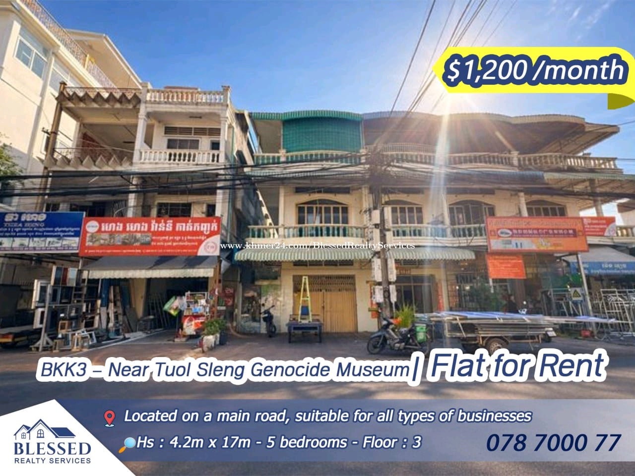 BKK3 โ Near Tuol Sleng Genocide Museum ๐ โ Flat for Rent ๐ โ Price: $1,200 / month โจ House size: 4.2m x 17m โจ Bedrooms: 5 โจ Bathrooms: 4 โจ Floors: 3 floors ๐ Location: Located on a main road, suitable for all types of businesses BKK3 โ ้ ่ฟๅๆฏๅป็งๆ็ญ็ปๅ็ฉ้ฆ ๐ โ ๅ ฌๅฏๅบ็ง ๐ โ ็ง้๏ผ 1,200 ็พๅ / ๆ โจ ๆฟๅฑๅฐบๅฏธ๏ผ 4.2 ็ฑณ x 17 ็ฑณ โจ ๅงๅฎค๏ผ 5 ้ด โจ ๅซ็้ด๏ผ 4 ้ด โจๆฅผๅฑ๏ผ 3 ๅฑ ๐ ไฝ็ฝฎ๏ผ ไฝไบไธปๅนฒ้ไธ๏ผ้ๅๅ็ง็ฑปๅ็ๅไธ็จ้ ๐ Contact: 078700xxxClick To Call Telegram: https://t.me/ryansear Channel Telegram: https://t.me/rent_blessedrealty License Number: E-25-030
