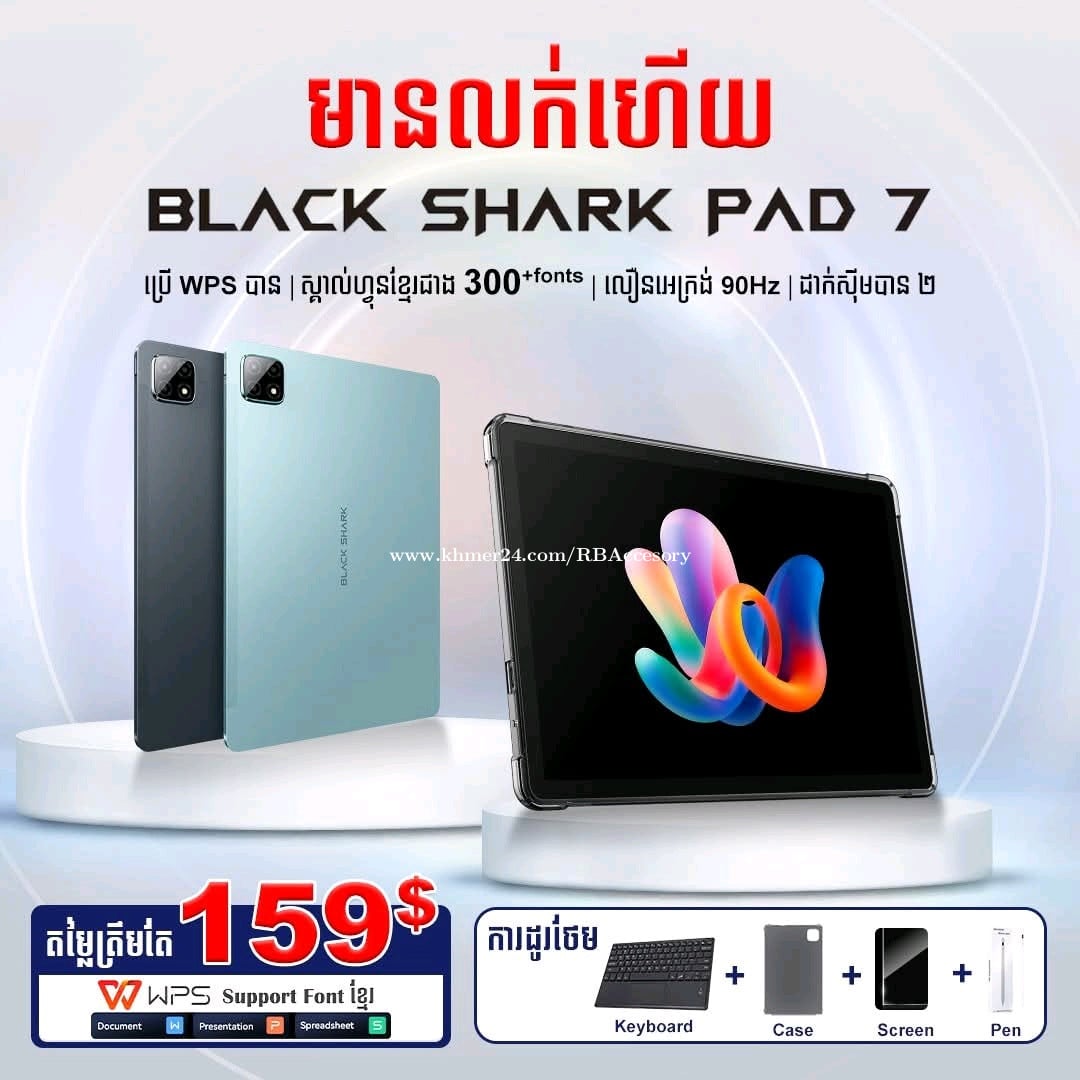 Blackshark pad 7 6G/128G brand new, warranty 1 year Free case, screen , keyboard and pen ⚡️Black Shark Pad 7 - អេក្រង់ធំ ច្បាស់ត្រជាក់ភ្នែក សម្រាប់លេងហ្គេម ការងារ និងកម្សាន្ត📱📖 👉 លក្ខណៈពិសេស ✅ ដាក់ស៊ីមបាន 2, RAM 6 GB + Storage 128GB ✅ អេក្រង់ធំ 11 អ៊ីង Full HD+, ពន្លឺ 420 nits ✅ លឿនអេក្រង់ 90Hz ✅ ប្រព័ន្ធដំណើរការឈីប MediaTek Helio G88 ✅ ថ្មធំ 7700mAh ល្បឿនសាក 18W ✅ Speaker ២គ្រប់ សម្លេងច្បាស់ ✅ Camera៖ កាមេរ៉ាមុខ 5MP / កាមេរ៉ាក្រោយ 13MP ✅ មុខងារ Split Screen : បំបែកអេក្រង់ ប្រើបានពីរកម្មវិធីក្នុងពេលតែមួយ ✅ ប្រព័ន្ធប្រតិបត្តិការ៖ Android 15 #BlackSharkPad7 #BlackSharkCambodia #Tabletសមរាប់ហ្គេម #Tabletសមរាប់សិស្សនិស្សិត #Tabletសមរាប់ការងារ