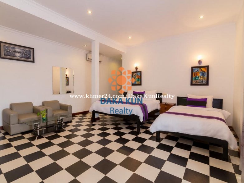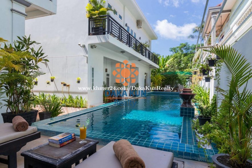 Contact Daka Kun Realty at 089899xxxClick To Call/012390xxxClick To Call ( WhatsApp & Telegram) or Email: inq****@dakakunrealty.comClick To Sent Email Property ID: DH008 Rental Price USD 1,200 per month • Land Size: 15m x 36m (550 sqm) • Total: 11 Bedrooms • Full Furnished • Lobby and Swimming Pool • Restaurant and Kitchen • Parking Space • Located on a 5m road, in Sangkat Sla Kram, Siem Reap City —---------------------------------------------------------------------------- More option: www.dakakunrealty.com Telegram channel ---> https://t.me/dakakunrealty Real Estate Agent: Yeun Sam Ath Nr: R-21-381-01