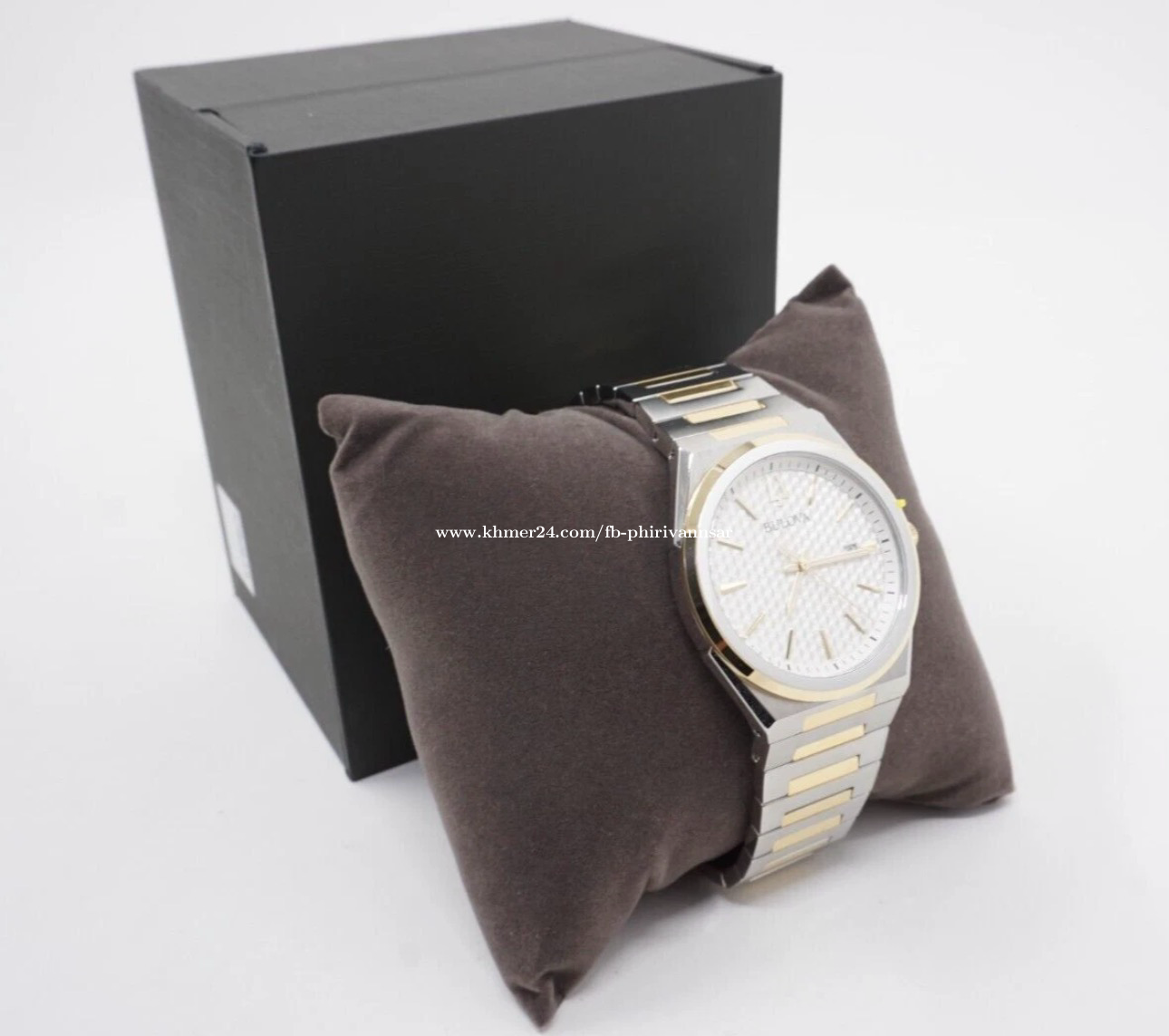 New with Box Product Details Features: Brand: Bulova Collection Name: Classic Model #: 98B424 Case Material: Stainless Steel Case Thickness: 7.65 mm Case Diameter: 39 mm Bezel: Fixed Movement: Japanese Quartz Caliber: GM12 Crystal: Anti-Reflective Sapphire Crystal Dial Color: Silver-White Luminous: Luminous Hands Calendar: Date Functions: Hour, Minute & Second Bracelet Material: Stainless Steel Bracelet Width: 24 mm Clasp Type: Deployment Clasp with Push Buttons Water Resistance: 50m ( 165 ft )