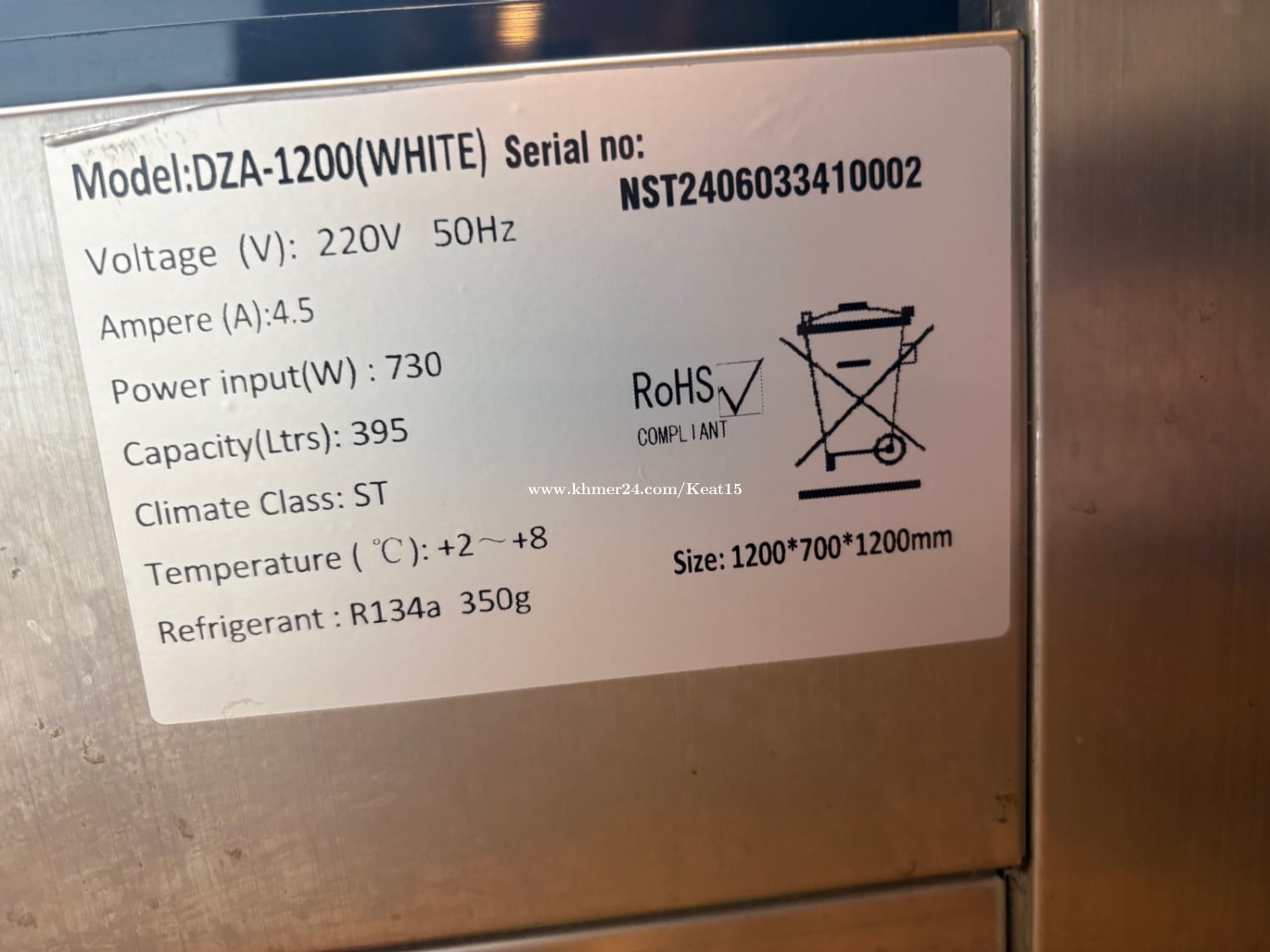 Cake Display Fridge / Bakery Showcase • Model: DZA-1200 (White) • Capacity: 395 Liters • Temperature: +2°C to +8°C (perfect for cakes & desserts) • Power: 730W | 220V / 50Hz • Refrigerant: R134a • Climate Class: ST • Size: 1200 × 700 × 1200 mm ទូនៅស្អាត ថ្មី ល្អ ចាប់អារម្មណ៍ អាចមកមើលផ្ទាល់បាន ទីតាំងនៅផ្លូវ315 ទួលគោក ✅ Commercial use ✅ Strong cooling ✅ Clean & well maintained ✅ Suitable for bakery, café, cake shop, restaurant