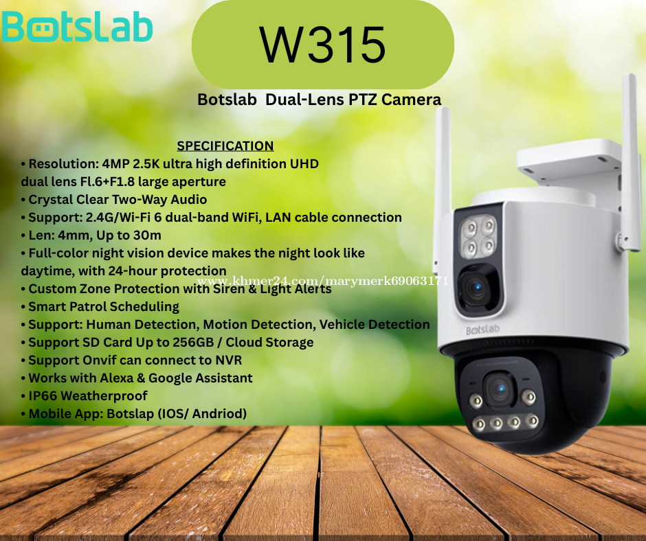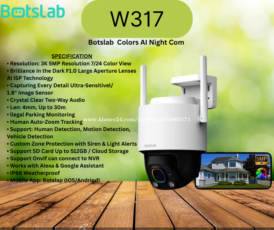 ជំរាប់សួរ🙏អតិថិជនជាទីគោរពថ្ងៃនេះក្រុមហ៊ុន Mary Technology បាននាំចូលនូវប្រភេទ Camera WiFi ♻️Brand ( BOTSLAB) 👉Botslab Dash Camera G300H 👉Botslab Dash Camera G500H 👉Botslab WIFI 2.5K 4MP Outdoor PT Camera W312 👉Botslab Outdoor Dual-Lens PTZ Camera 4MP+4MP W315 👉Botslab 5MP Outdoor Pan / Tilt AI Camera W317 👉Botslab WIFI 2K 3MP Indoor PT Cam Dual Camera C231 👉Botslab WIFI 3K 5MP Indoor PT Camera 2 Pro C221 👉Botslab 8MP Indoor Camera 3C Pro C224 👉Botslab 5MP Indoor Camera 2C Pro C222 👉Botslab WIFI 2K 3MP Indoor PT Camera 2 C21 🙏 ព័ត៍មានបន្ថែមអាចទំនាក់ទំនង មកកាន់លេខខាងក្រោមនេះ ☎️098582xxxClick To Call ☎️099582xxxClick To Call ☎️066704xxxClick To Call 👉ចុចចូល Telegram: https://t.me/tata338713 👉Facebook Page: #MaryTechnologyCo.,Ltd 🗺សម្រាប់ទីតាំង https://goo.gl/maps/2ZAZ6Bb6P6jPUS58 ផ្ទះលេខ 20N ផ្លូវលេខ K4B សង្កាត់ទឹកថ្លា ខណ្ឌសែនសុខ ភ្នំពេញ #ZKTeco #wooribankcambodia #Bank #Cambodia #HIKVISION #SP #clinic #TPLink #ptz #power #4G #solar #Omada #optic #phnompenh #home #office #Install #cables #switch #INTERNET #4G #LTE #model #portsmouth #rackmount #archery #router #HUAWEIeKit #CenturyStar #ITC #totenrack #watashi