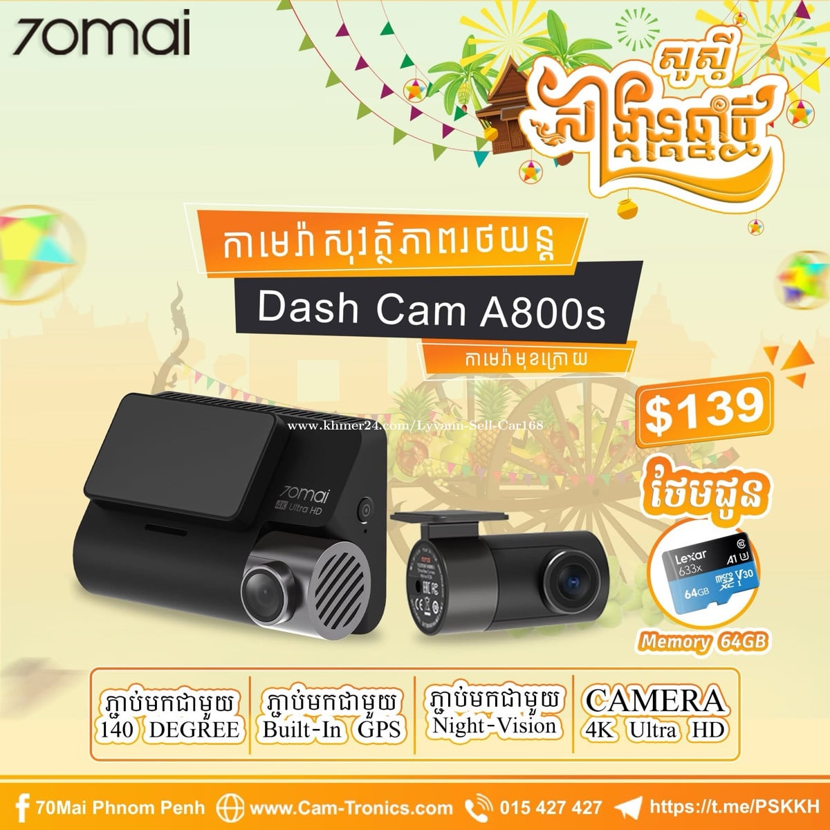ទើបកាត់បានថ្មីណាស់ Camera 70Mai A800S Free 64G memory Record Full 4K HDR មុខ នឹង ក្រោយ Call: 093211xxxClick To Call