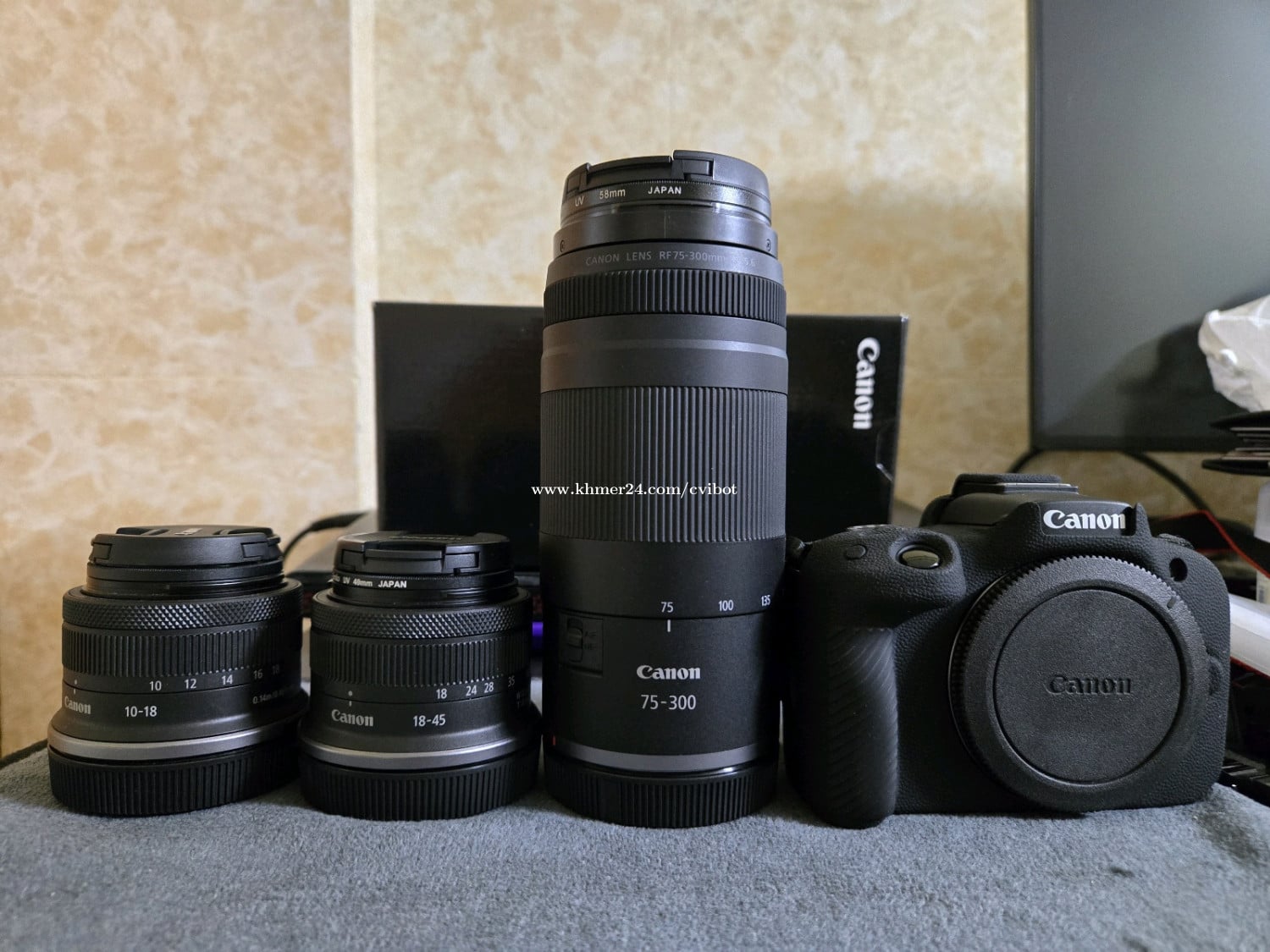 Canon R50 ទើបទិញបាន 3ខែ អាចចចារបាន កាន់តែចំនេញ lens ultra wide 10-18 Kit lens 18-45 RF zoom lens 75-300