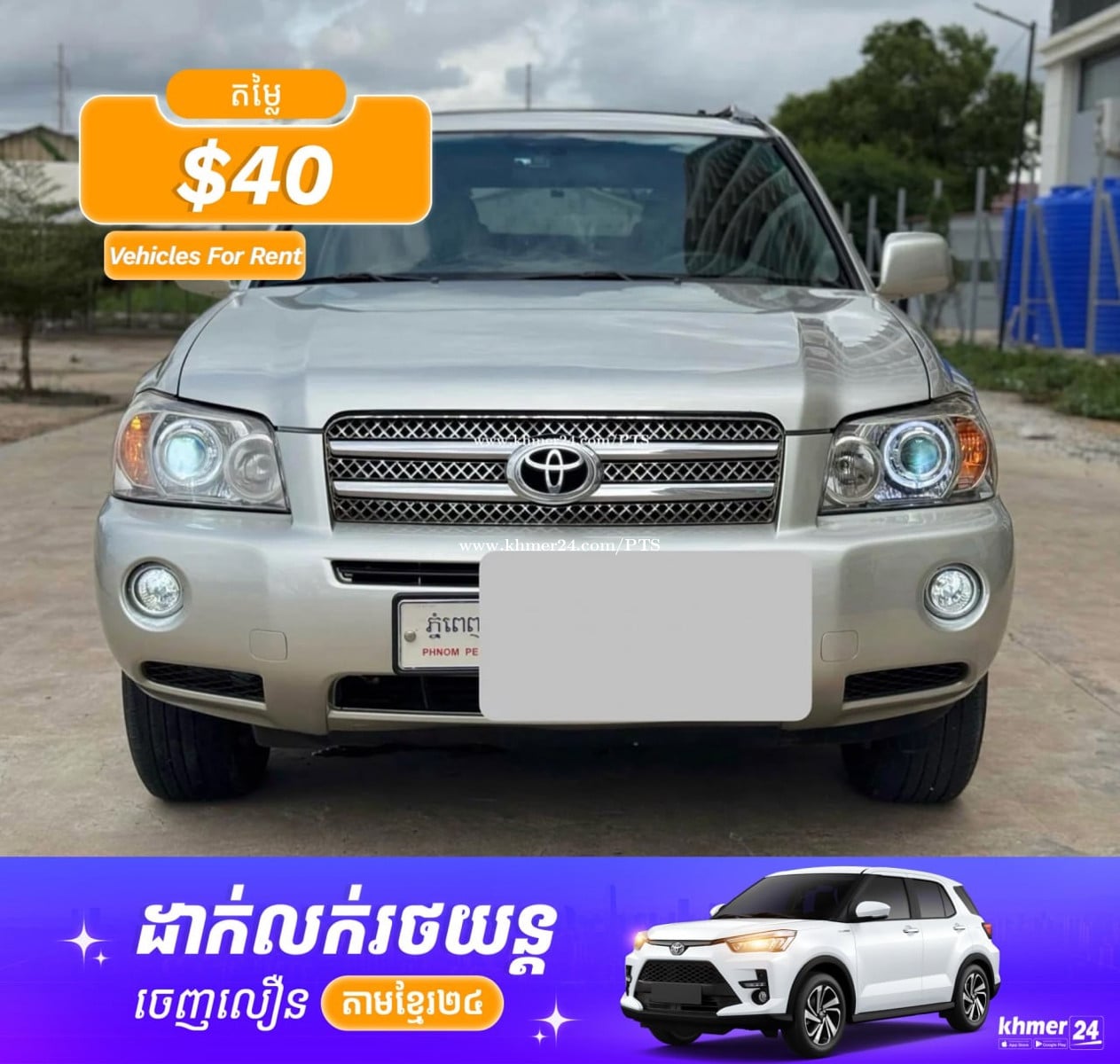 Dear Sir/Madam: We have many kinds of car for rental: Toyota Highlander 2001-2003 Lexus RX300 2001-2XXX Pick up Toyota Prius 2004-2005 Toyota Camry 2001-2003 Morning Rav4 CRV Corola Silver 2002 Lexus Lx470 The price is based on the car model. Insurance is provided Please feel free to contact me. Contact Person: Engly Line: PTS Car Renal Telegram: PTS Car Rental WhatsApp: PTS Car Rental Wechat: PTS Car Rental Please feel free to contact me. Thank you