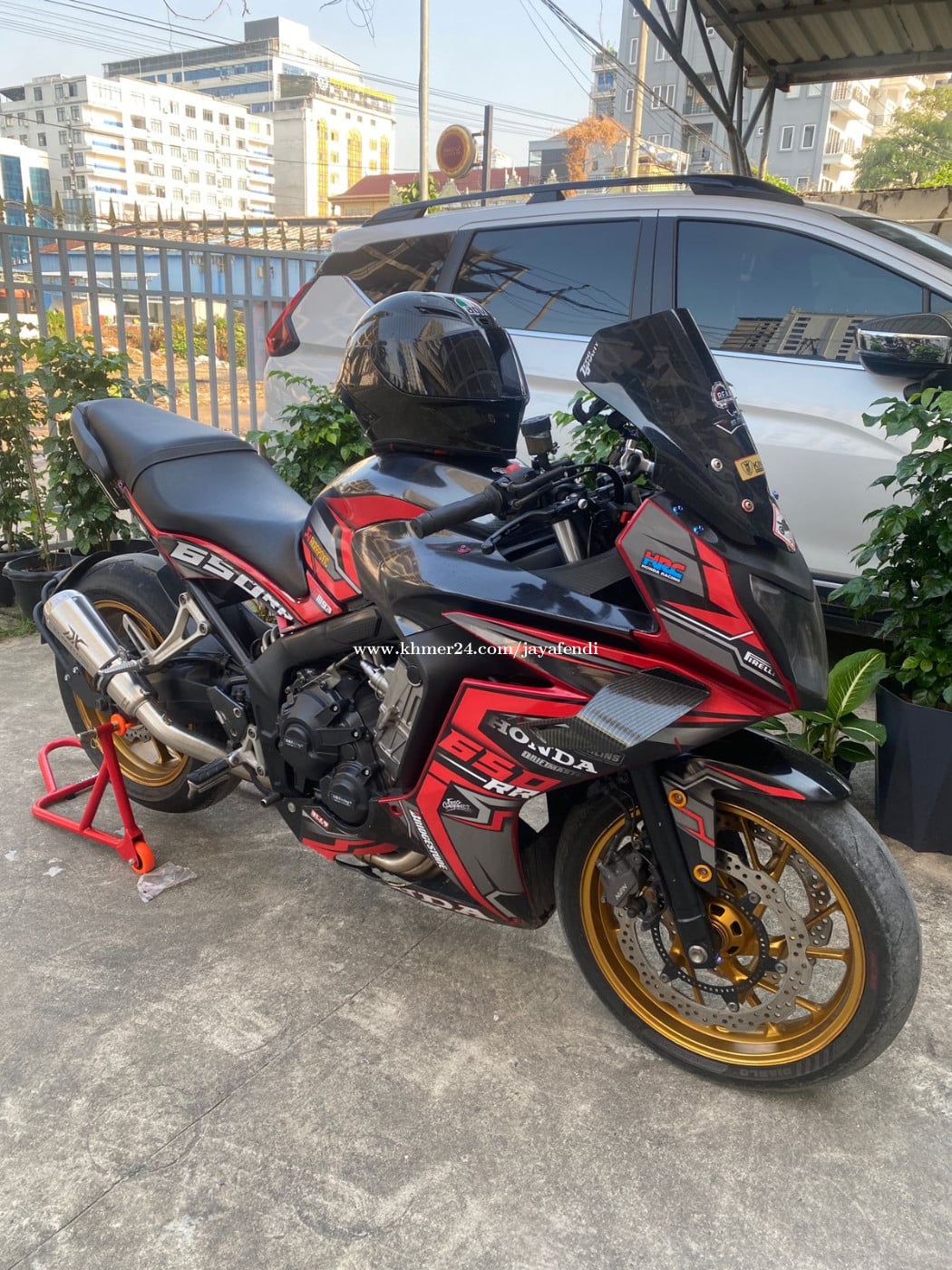 ម៉ូតូលក់ប្រញ៉ាប់លុយ។ ធានាម៉ាសុីន នឹង កម្លាំង ។ ធនាលើប្រព័ន្ធភ្លើង ។ តម្លៃអាចចរចារបាន ។ 4 Cylinder and very good sound with silincer exhaust Modification incl all , Free Paddock and Helm Engine and power guaranteed. Electrical system warranty. Price good. Not tax KM 50k+