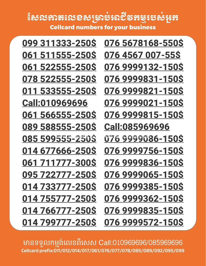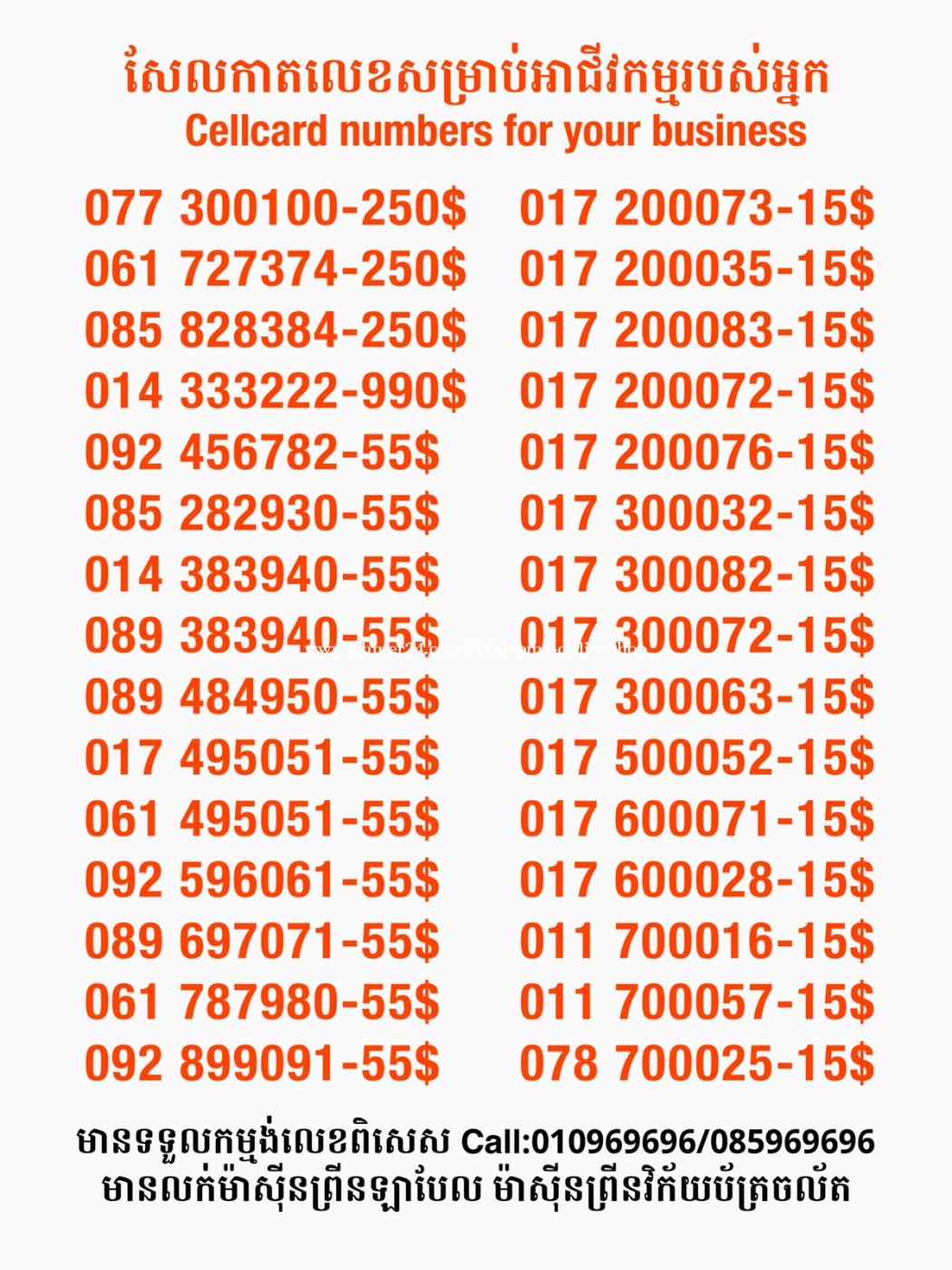 មានលក់លេខពិសេស មានទទួលកម្មង់លេខពិសេស មានលក់ម៉ាស៊ីនព្រីនឡាបែលចល័ត មានលក់ម៉ាស៊ីនព្រីនវិក័យប័ត្រចល័ត មានលក់សម្ភារៈប្រើប្រាស់ក្នុងគ្រួសារ Smart Prime II 1=30$ Smart hero 1=40$ ទូរសព្ទថ្មីក្នុងប្រអប់ លក់ធូរៗរហូតអស់ពីស្តុក អាចប្រើជាឧបករណ៍សម្រាប់ស៊ែរ wifi បាន ទំនាក់ទំនង(ខ្មែរ | English | 中文):010969696 | 085969696 Telegram: https://t.me/W9696 Telegram group: https://t.me/konkonnada អាសយដ្ឋាន:ផ្ទះលេខ២៣ ផ្លូវបេតុងលេខ១ ភូមិទួលពង្រ សង្កាត់ចោមចៅ ខណ្ឌពោធិ៍សែនជ័យ រាជធានីភ្នំពេញ ទីតាំង https://goo.gl/maps/8moqW4iTHUfJEvWQ9 ដើម្បីស្វែងរកលេខអាជីវកម្មដែលលោកអ្នកពេញចិត្ត សូមចូលទៅកាន់:https://www.khmer24.com/Welcome-onlineshop