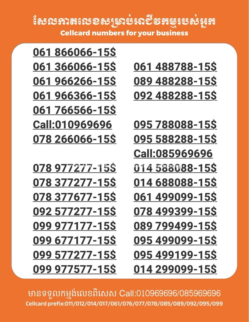 មានលក់លេខពិសេស មានទទួលកម្មង់លេខពិសេស មានលក់ម៉ាស៊ីនព្រីនឡាបែលចល័ត មានលក់ម៉ាស៊ីនព្រីនវិក័យប័ត្រចល័ត មានលក់សម្ភារៈប្រើប្រាស់ក្នុងគ្រួសារ Smart Prime II 1=30$ Smart hero 1=40$ ទូរសព្ទថ្មីក្នុងប្រអប់ លក់ធូរៗរហូតអស់ពីស្តុក អាចប្រើជាឧបករណ៍សម្រាប់ស៊ែរ wifi បាន ទំនាក់ទំនង(ខ្មែរ | English | 中文):010969696 | 085969696 Telegram: https://t.me/W9696 Telegram group: https://t.me/konkonnada អាសយដ្ឋាន:ផ្ទះលេខ២៣ ផ្លូវបេតុងលេខ១ ភូមិទួលពង្រ សង្កាត់ចោមចៅ ខណ្ឌពោធិ៍សែនជ័យ រាជធានីភ្នំពេញ ទីតាំង https://goo.gl/maps/8moqW4iTHUfJEvWQ9 ដើម្បីស្វែងរកលេខអាជីវកម្មដែលលោកអ្នកពេញចិត្ត សូមចូលទៅកាន់:https://www.khmer24.com/Welcome-onlineshop