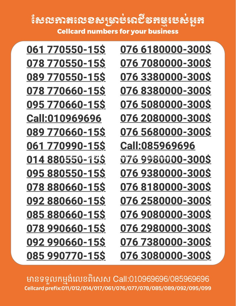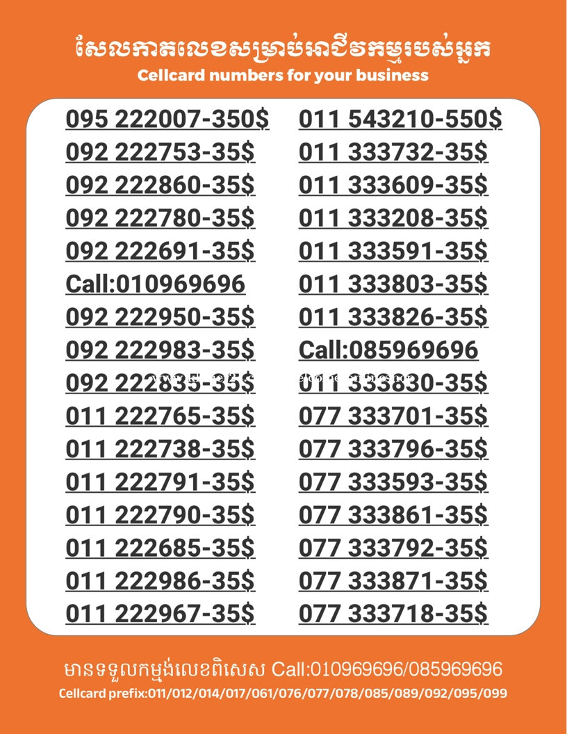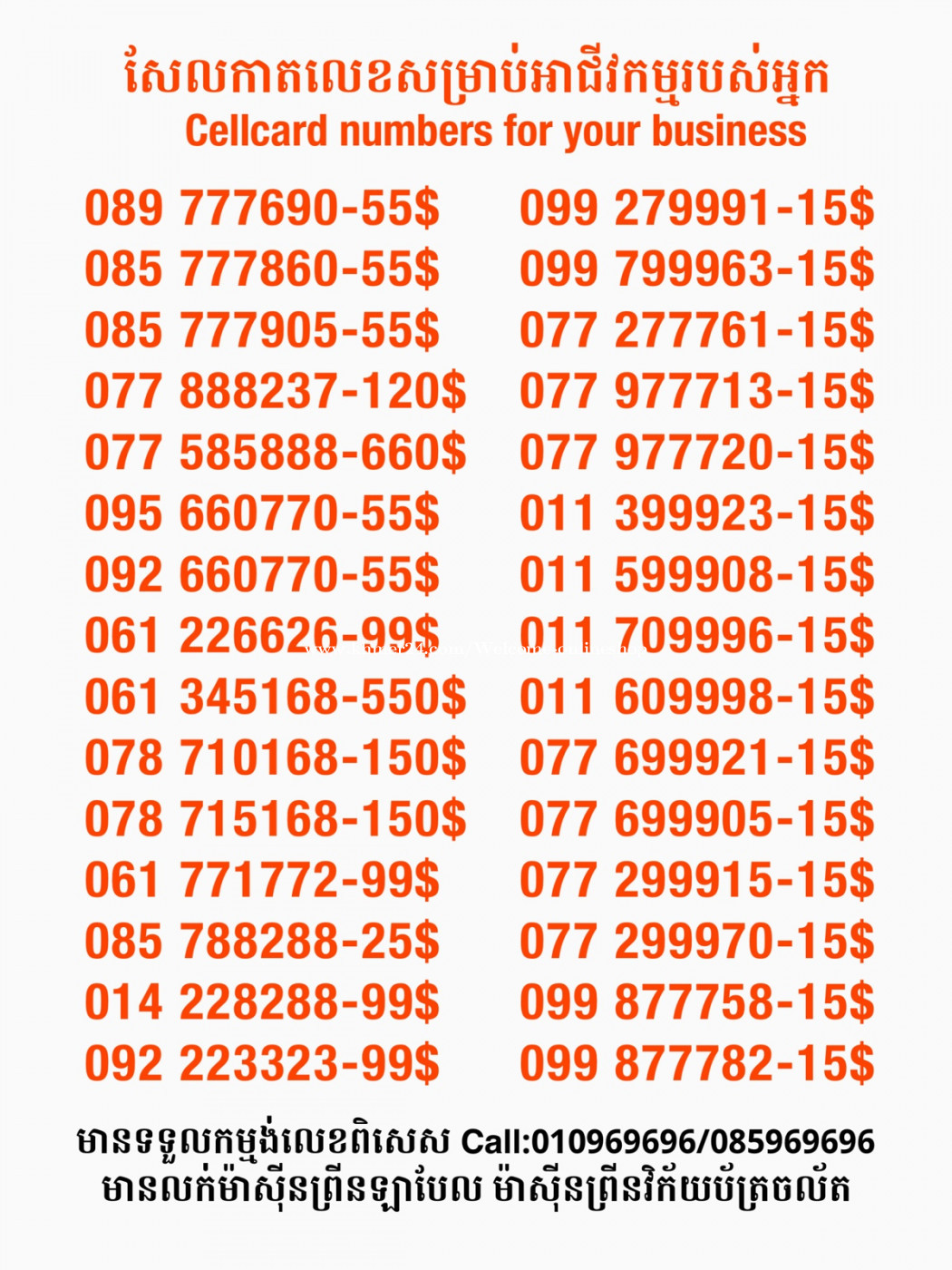 មានលក់លេខពិសេស មានទទួលកម្មង់លេខពិសេស មានលក់ម៉ាស៊ីនព្រីនឡាបែលចល័ត មានលក់ម៉ាស៊ីនព្រីនវិក័យប័ត្រចល័ត មានលក់សម្ភារៈប្រើប្រាស់ក្នុងគ្រួសារ Smart Prime II 1=30$ Smart hero 1=40$ ទូរសព្ទថ្មីក្នុងប្រអប់ លក់ធូរៗរហូតអស់ពីស្តុក អាចប្រើជាឧបករណ៍សម្រាប់ស៊ែរ wifi បាន ទំនាក់ទំនង(ខ្មែរ | English | 中文):010969696 | 085969696 Telegram: https://t.me/W9696 Telegram group: https://t.me/konkonnada អាសយដ្ឋាន:ផ្ទះលេខ២៣ ផ្លូវបេតុងលេខ១ ភូមិទួលពង្រ សង្កាត់ចោមចៅ ខណ្ឌពោធិ៍សែនជ័យ រាជធានីភ្នំពេញ ទីតាំង https://goo.gl/maps/8moqW4iTHUfJEvWQ9 ដើម្បីស្វែងរកលេខអាជីវកម្មដែលលោកអ្នកពេញចិត្ត សូមចូលទៅកាន់:https://www.khmer24.com/Welcome-onlineshop