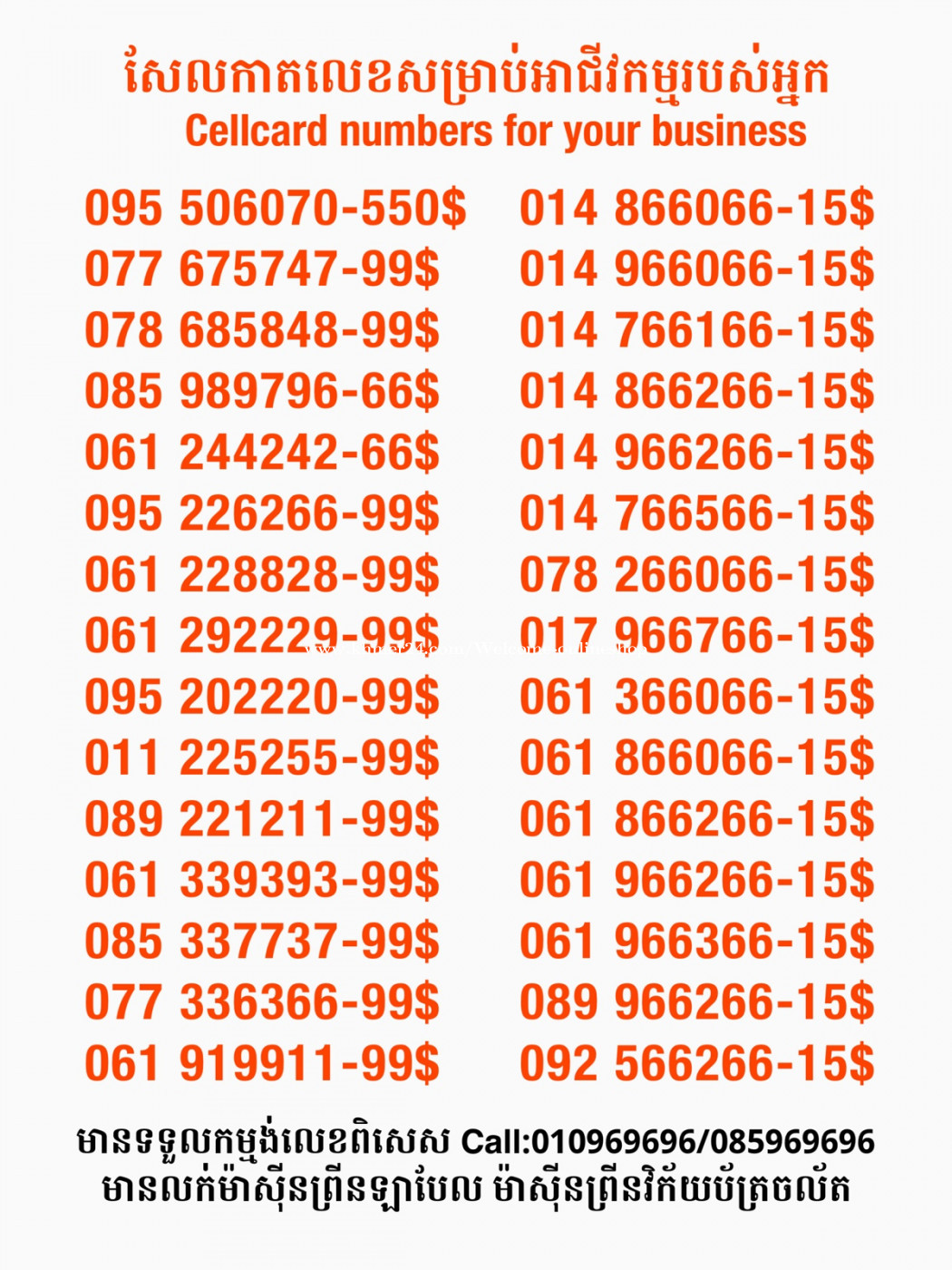 មានលក់លេខពិសេស មានទទួលកម្មង់លេខពិសេស មានលក់ម៉ាស៊ីនព្រីនឡាបែលចល័ត មានលក់ម៉ាស៊ីនព្រីនវិក័យប័ត្រចល័ត មានលក់សម្ភារៈប្រើប្រាស់ក្នុងគ្រួសារ Smart Prime II 1=30$ Smart hero 1=40$ ទូរសព្ទថ្មីក្នុងប្រអប់ លក់ធូរៗរហូតអស់ពីស្តុក អាចប្រើជាឧបករណ៍សម្រាប់ស៊ែរ wifi បាន ទំនាក់ទំនង(ខ្មែរ | English | 中文):010969696 | 085969696 Telegram: https://t.me/W9696 Telegram group: https://t.me/konkonnada អាសយដ្ឋាន:ផ្ទះលេខ២៣ ផ្លូវបេតុងលេខ១ ភូមិទួលពង្រ សង្កាត់ចោមចៅ ខណ្ឌពោធិ៍សែនជ័យ រាជធានីភ្នំពេញ ទីតាំង https://goo.gl/maps/8moqW4iTHUfJEvWQ9 ដើម្បីស្វែងរកលេខអាជីវកម្មដែលលោកអ្នកពេញចិត្ត សូមចូលទៅកាន់:https://www.khmer24.com/Welcome-onlineshop