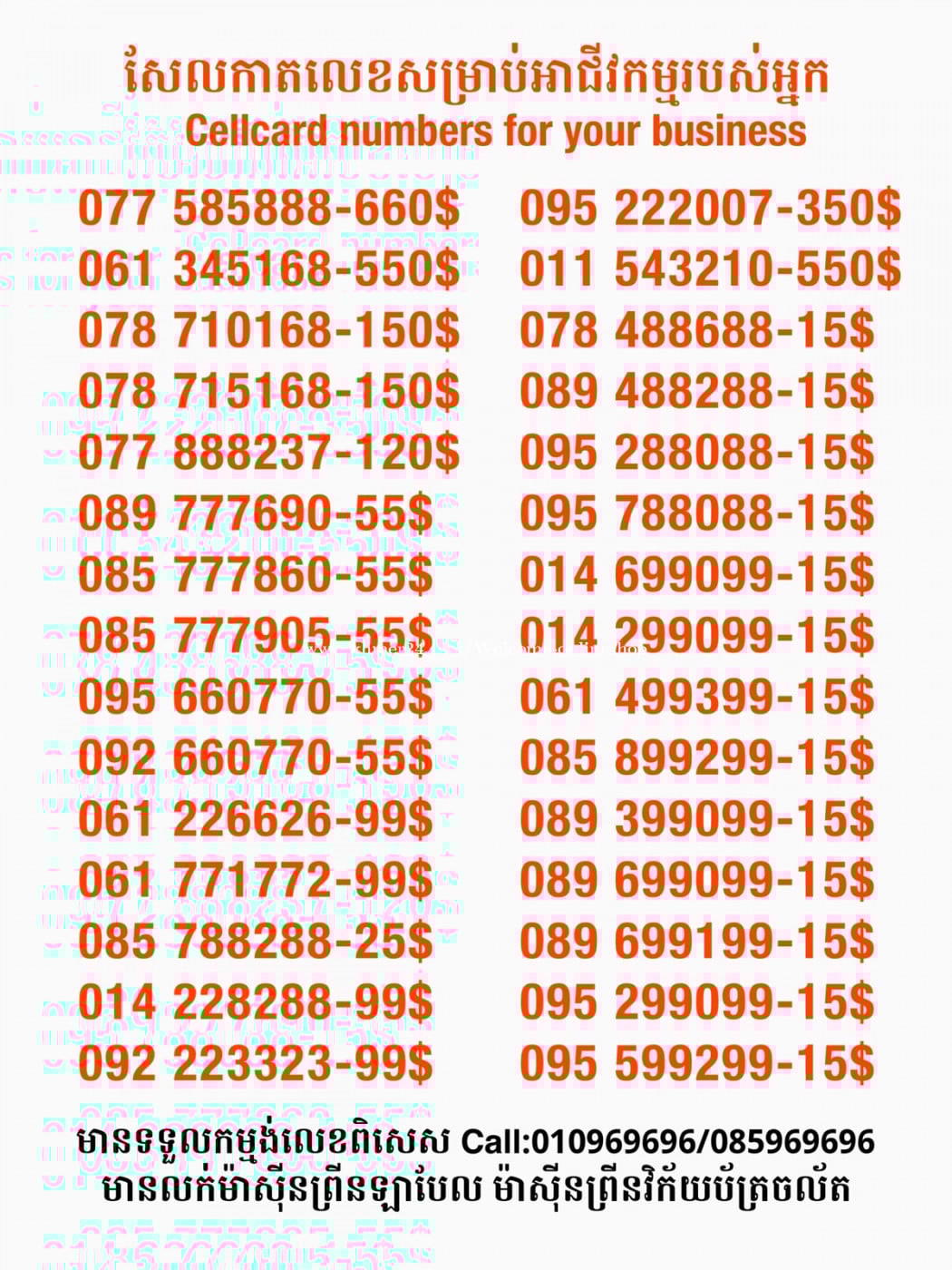 មានលក់លេខពិសេស មានទទួលកម្មង់លេខពិសេស មានលក់ម៉ាស៊ីនព្រីនឡាបែលចល័ត មានលក់ម៉ាស៊ីនព្រីនវិក័យប័ត្រចល័ត មានលក់សម្ភារៈប្រើប្រាស់ក្នុងគ្រួសារ Smart Prime II 1=30$ Smart hero 1=40$ ទូរសព្ទថ្មីក្នុងប្រអប់ លក់ធូរៗរហូតអស់ពីស្តុក អាចប្រើជាឧបករណ៍សម្រាប់ស៊ែរ wifi បាន ទំនាក់ទំនង(ខ្មែរ | English | 中文):010969696 | 085969696 Telegram: https://t.me/W9696 Telegram group: https://t.me/konkonnada អាសយដ្ឋាន:ផ្ទះលេខ២៣ ផ្លូវបេតុងលេខ១ ភូមិទួលពង្រ សង្កាត់ចោមចៅ ខណ្ឌពោធិ៍សែនជ័យ រាជធានីភ្នំពេញ ទីតាំង https://goo.gl/maps/8moqW4iTHUfJEvWQ9 ដើម្បីស្វែងរកលេខអាជីវកម្មដែលលោកអ្នកពេញចិត្ត សូមចូលទៅកាន់:https://www.khmer24.com/Welcome-onlineshop