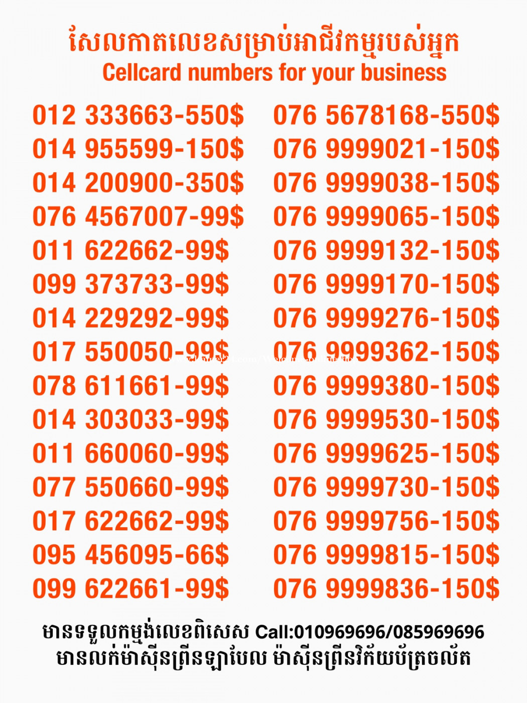 មានលក់លេខពិសេស មានទទួលកម្មង់លេខពិសេស មានលក់ម៉ាស៊ីនព្រីនឡាបែលចល័ត មានលក់ម៉ាស៊ីនព្រីនវិក័យប័ត្រចល័ត មានលក់សម្ភារៈប្រើប្រាស់ក្នុងគ្រួសារ Smart Prime II 1=30$ Smart hero 1=40$ ទូរសព្ទថ្មីក្នុងប្រអប់ លក់ធូរៗរហូតអស់ពីស្តុក អាចប្រើជាឧបករណ៍សម្រាប់ស៊ែរ wifi បាន ទំនាក់ទំនង(ខ្មែរ | English | 中文):010969696 | 085969696 Telegram: https://t.me/W9696 Telegram group: https://t.me/konkonnada អាសយដ្ឋាន:ផ្ទះលេខ២៣ ផ្លូវបេតុងលេខ១ ភូមិទួលពង្រ សង្កាត់ចោមចៅ ខណ្ឌពោធិ៍សែនជ័យ រាជធានីភ្នំពេញ ទីតាំង https://goo.gl/maps/8moqW4iTHUfJEvWQ9 ដើម្បីស្វែងរកលេខអាជីវកម្មដែលលោកអ្នកពេញចិត្ត សូមចូលទៅកាន់:https://www.khmer24.com/Welcome-onlineshop