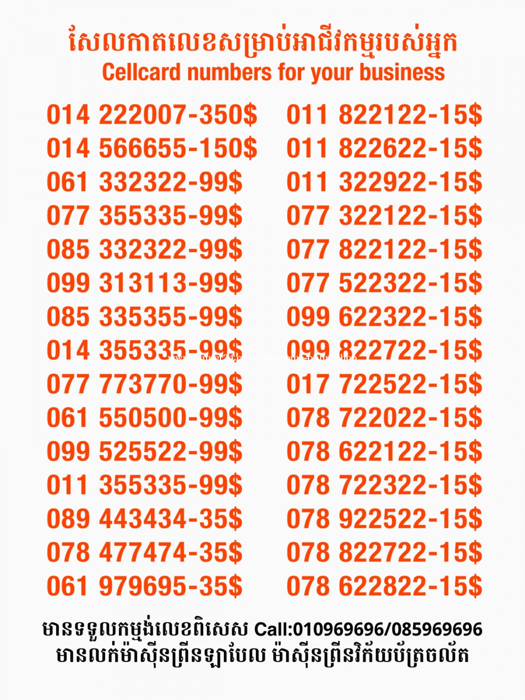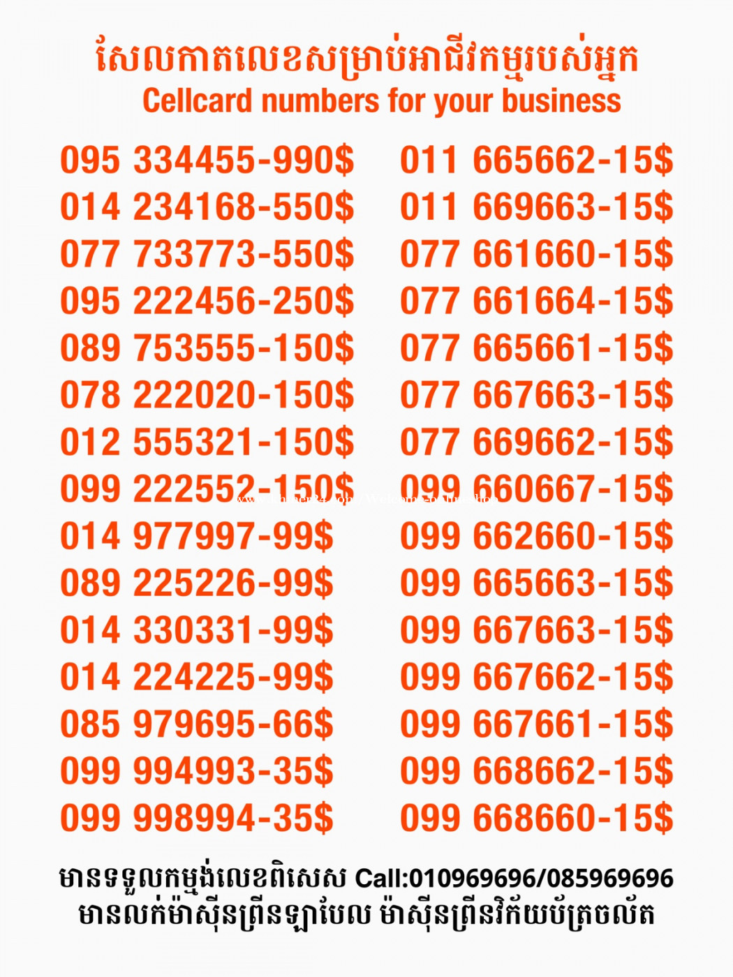 មានលក់លេខពិសេស មានទទួលកម្មង់លេខពិសេស មានលក់ម៉ាស៊ីនព្រីនឡាបែលចល័ត មានលក់ម៉ាស៊ីនព្រីនវិក័យប័ត្រចល័ត មានលក់សម្ភារៈប្រើប្រាស់ក្នុងគ្រួសារ Smart Prime II 1=30$ Smart hero 1=40$ ទូរសព្ទថ្មីក្នុងប្រអប់ លក់ធូរៗរហូតអស់ពីស្តុក អាចប្រើជាឧបករណ៍សម្រាប់ស៊ែរ wifi បាន ទំនាក់ទំនង(ខ្មែរ | English | 中文):010969696 | 085969696 Telegram: https://t.me/W9696 Telegram group: https://t.me/konkonnada អាសយដ្ឋាន:ផ្ទះលេខ២៣ ផ្លូវបេតុងលេខ១ ភូមិទួលពង្រ សង្កាត់ចោមចៅ ខណ្ឌពោធិ៍សែនជ័យ រាជធានីភ្នំពេញ ទីតាំង https://goo.gl/maps/8moqW4iTHUfJEvWQ9 ដើម្បីស្វែងរកលេខអាជីវកម្មដែលលោកអ្នកពេញចិត្ត សូមចូលទៅកាន់:https://www.khmer24.com/Welcome-onlineshop