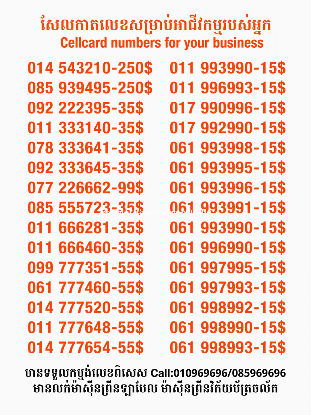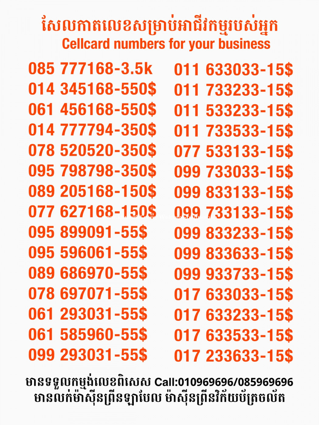 មានលក់លេខពិសេស មានទទួលកម្មង់លេខពិសេស មានលក់ម៉ាស៊ីនព្រីនឡាបែលចល័ត មានលក់ម៉ាស៊ីនព្រីនវិក័យប័ត្រចល័ត មានលក់សម្ភារៈប្រើប្រាស់ក្នុងគ្រួសារ Smart Prime II 1=30$ Smart hero 1=40$ ទូរសព្ទថ្មីក្នុងប្រអប់ លក់ធូរៗរហូតអស់ពីស្តុក អាចប្រើជាឧបករណ៍សម្រាប់ស៊ែរ wifi បាន ទំនាក់ទំនង(ខ្មែរ | English | 中文):010969696 | 085969696 Telegram: https://t.me/W9696 Telegram group: https://t.me/konkonnada អាសយដ្ឋាន:ផ្ទះលេខ២៣ ផ្លូវបេតុងលេខ១ ភូមិទួលពង្រ សង្កាត់ចោមចៅ ខណ្ឌពោធិ៍សែនជ័យ រាជធានីភ្នំពេញ ទីតាំង https://goo.gl/maps/8moqW4iTHUfJEvWQ9 ដើម្បីស្វែងរកលេខអាជីវកម្មដែលលោកអ្នកពេញចិត្ត សូមចូលទៅកាន់:https://www.khmer24.com/Welcome-onlineshop