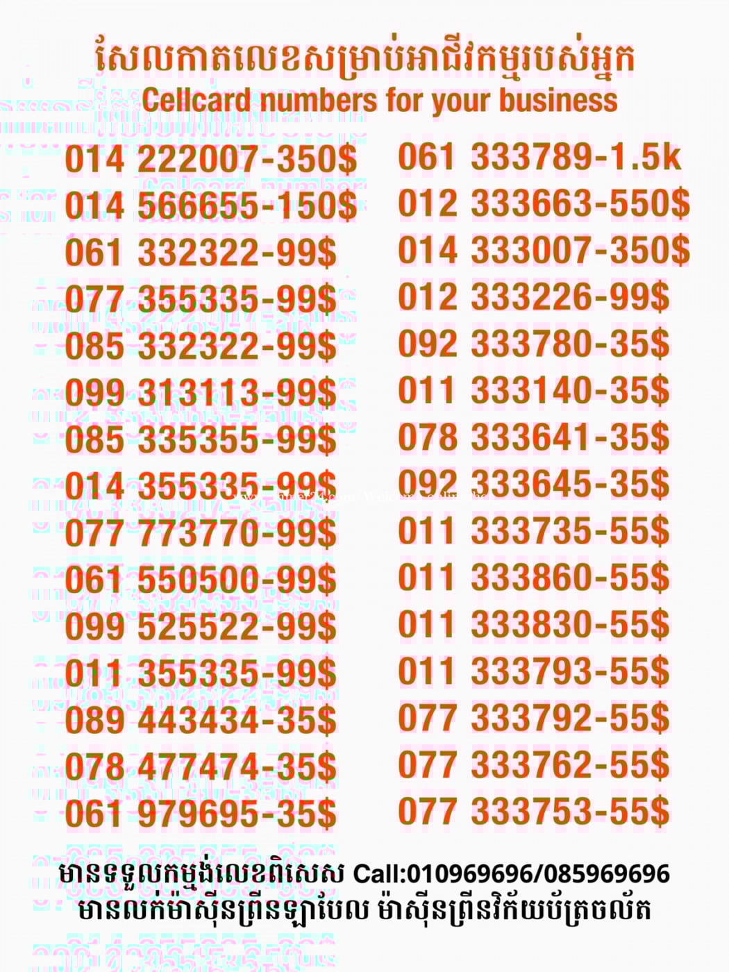 មានលក់លេខពិសេស មានទទួលកម្មង់លេខពិសេស មានលក់ម៉ាស៊ីនព្រីនឡាបែលចល័ត មានលក់ម៉ាស៊ីនព្រីនវិក័យប័ត្រចល័ត មានលក់សម្ភារៈប្រើប្រាស់ក្នុងគ្រួសារ Smart Prime II 1=30$ Smart hero 1=40$ ទូរសព្ទថ្មីក្នុងប្រអប់ លក់ធូរៗរហូតអស់ពីស្តុក អាចប្រើជាឧបករណ៍សម្រាប់ស៊ែរ wifi បាន ទំនាក់ទំនង(ខ្មែរ | English | 中文):010969696 | 085969696 Telegram: https://t.me/W9696 Telegram group: https://t.me/konkonnada អាសយដ្ឋាន:ផ្ទះលេខ២៣ ផ្លូវបេតុងលេខ១ ភូមិទួលពង្រ សង្កាត់ចោមចៅ ខណ្ឌពោធិ៍សែនជ័យ រាជធានីភ្នំពេញ ទីតាំង https://goo.gl/maps/8moqW4iTHUfJEvWQ9 ដើម្បីស្វែងរកលេខអាជីវកម្មដែលលោកអ្នកពេញចិត្ត សូមចូលទៅកាន់:https://www.khmer24.com/Welcome-onlineshop