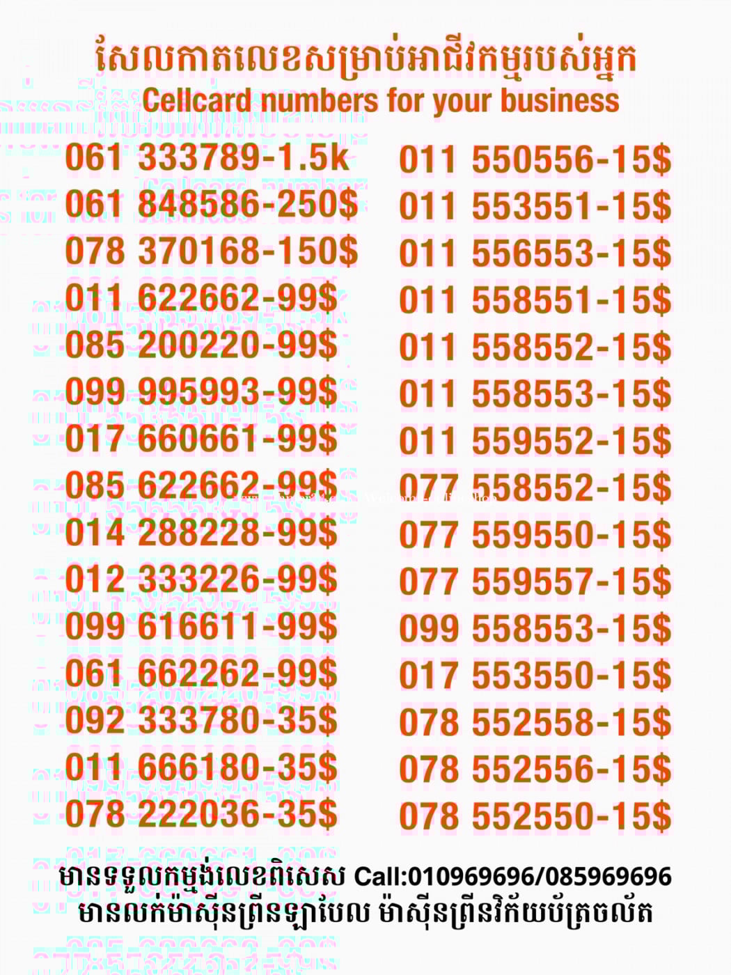 មានលក់លេខពិសេស មានទទួលកម្មង់លេខពិសេស មានលក់ម៉ាស៊ីនព្រីនឡាបែលចល័ត មានលក់ម៉ាស៊ីនព្រីនវិក័យប័ត្រចល័ត មានលក់សម្ភារៈប្រើប្រាស់ក្នុងគ្រួសារ Smart Prime II 1=30$ Smart hero 1=40$ ទូរសព្ទថ្មីក្នុងប្រអប់ លក់ធូរៗរហូតអស់ពីស្តុក អាចប្រើជាឧបករណ៍សម្រាប់ស៊ែរ wifi បាន ទំនាក់ទំនង(ខ្មែរ | English | 中文):010969696 | 085969696 Telegram: https://t.me/W9696 Telegram group: https://t.me/konkonnada អាសយដ្ឋាន:ផ្ទះលេខ២៣ ផ្លូវបេតុងលេខ១ ភូមិទួលពង្រ សង្កាត់ចោមចៅ ខណ្ឌពោធិ៍សែនជ័យ រាជធានីភ្នំពេញ ទីតាំង https://goo.gl/maps/8moqW4iTHUfJEvWQ9 ដើម្បីស្វែងរកលេខអាជីវកម្មដែលលោកអ្នកពេញចិត្ត សូមចូលទៅកាន់:https://www.khmer24.com/Welcome-onlineshop