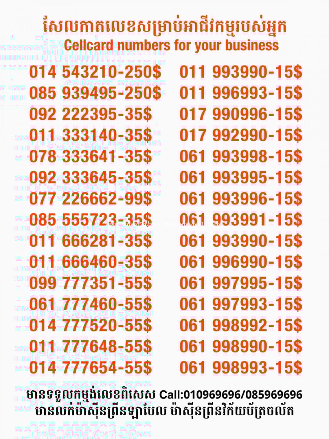 មានលក់លេខពិសេស មានទទួលកម្មង់លេខពិសេស មានលក់ម៉ាស៊ីនព្រីនឡាបែលចល័ត មានលក់ម៉ាស៊ីនព្រីនវិក័យប័ត្រចល័ត មានលក់សម្ភារៈប្រើប្រាស់ក្នុងគ្រួសារ Smart Prime II 1=30$ Smart hero 1=40$ ទូរសព្ទថ្មីក្នុងប្រអប់ លក់ធូរៗរហូតអស់ពីស្តុក អាចប្រើជាឧបករណ៍សម្រាប់ស៊ែរ wifi បាន ទំនាក់ទំនង(ខ្មែរ | English | 中文):010969696 | 085969696 Telegram: https://t.me/W9696 Telegram group: https://t.me/konkonnada អាសយដ្ឋាន:ផ្ទះលេខ២៣ ផ្លូវបេតុងលេខ១ ភូមិទួលពង្រ សង្កាត់ចោមចៅ ខណ្ឌពោធិ៍សែនជ័យ រាជធានីភ្នំពេញ ទីតាំង https://goo.gl/maps/8moqW4iTHUfJEvWQ9 ដើម្បីស្វែងរកលេខអាជីវកម្មដែលលោកអ្នកពេញចិត្ត សូមចូលទៅកាន់:https://www.khmer24.com/Welcome-onlineshop