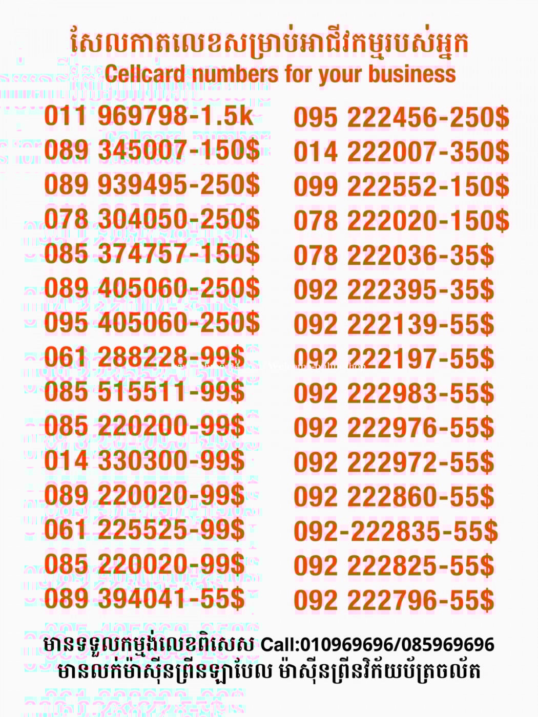 មានលក់លេខពិសេស មានទទួលកម្មង់លេខពិសេស មានលក់ម៉ាស៊ីនព្រីនឡាបែលចល័ត មានលក់ម៉ាស៊ីនព្រីនវិក័យប័ត្រចល័ត មានលក់សម្ភារៈប្រើប្រាស់ក្នុងគ្រួសារ Smart Prime II 1=30$ Smart hero 1=40$ ទូរសព្ទថ្មីក្នុងប្រអប់ លក់ធូរៗរហូតអស់ពីស្តុក អាចប្រើជាឧបករណ៍សម្រាប់ស៊ែរ wifi បាន ទំនាក់ទំនង(ខ្មែរ | English | 中文):010969696 | 085969696 Telegram: https://t.me/W9696 Telegram group: https://t.me/konkonnada អាសយដ្ឋាន:ផ្ទះលេខ២៣ ផ្លូវបេតុងលេខ១ ភូមិទួលពង្រ សង្កាត់ចោមចៅ ខណ្ឌពោធិ៍សែនជ័យ រាជធានីភ្នំពេញ ទីតាំង https://goo.gl/maps/8moqW4iTHUfJEvWQ9 ដើម្បីស្វែងរកលេខអាជីវកម្មដែលលោកអ្នកពេញចិត្ត សូមចូលទៅកាន់:https://www.khmer24.com/Welcome-onlineshop