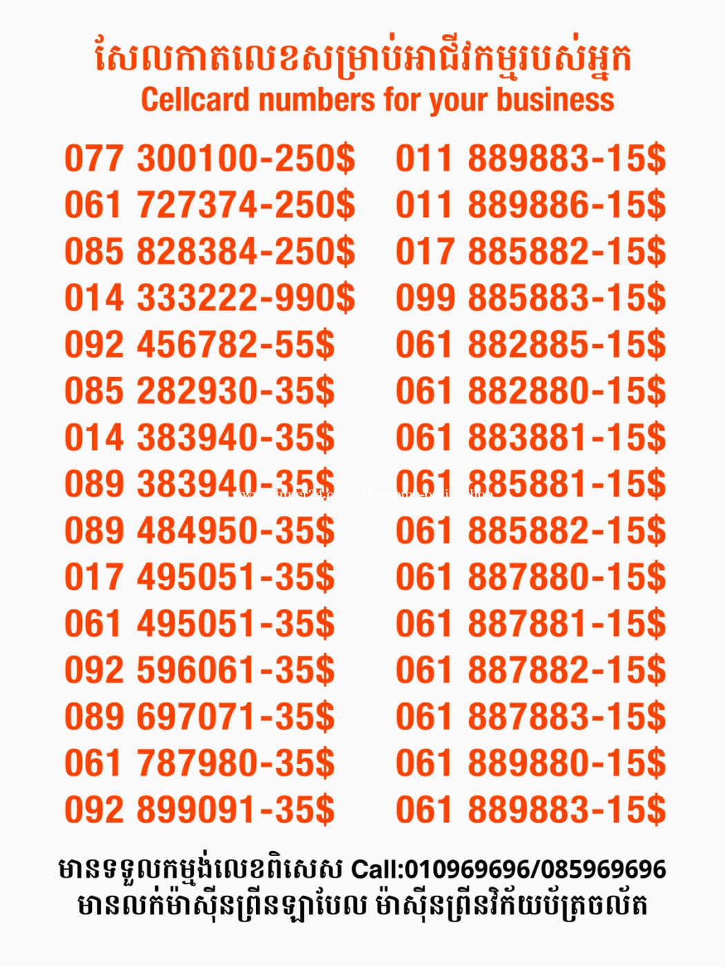 មានលក់លេខពិសេស មានទទួលកម្មង់លេខពិសេស មានលក់ម៉ាស៊ីនព្រីនឡាបែលចល័ត មានលក់ម៉ាស៊ីនព្រីនវិក័យប័ត្រចល័ត មានលក់សម្ភារៈប្រើប្រាស់ក្នុងគ្រួសារ Smart Prime II 1=30$ Smart hero 1=40$ ទូរសព្ទថ្មីក្នុងប្រអប់ លក់ធូរៗរហូតអស់ពីស្តុក អាចប្រើជាឧបករណ៍សម្រាប់ស៊ែរ wifi បាន ទំនាក់ទំនង(ខ្មែរ | English | 中文):010969696 | 085969696 Telegram: https://t.me/W9696 Telegram group: https://t.me/konkonnada អាសយដ្ឋាន:ផ្ទះលេខ២៣ ផ្លូវបេតុងលេខ១ ភូមិទួលពង្រ សង្កាត់ចោមចៅ ខណ្ឌពោធិ៍សែនជ័យ រាជធានីភ្នំពេញ ទីតាំង https://goo.gl/maps/8moqW4iTHUfJEvWQ9 ដើម្បីស្វែងរកលេខអាជីវកម្មដែលលោកអ្នកពេញចិត្ត សូមចូលទៅកាន់:https://www.khmer24.com/Welcome-onlineshop