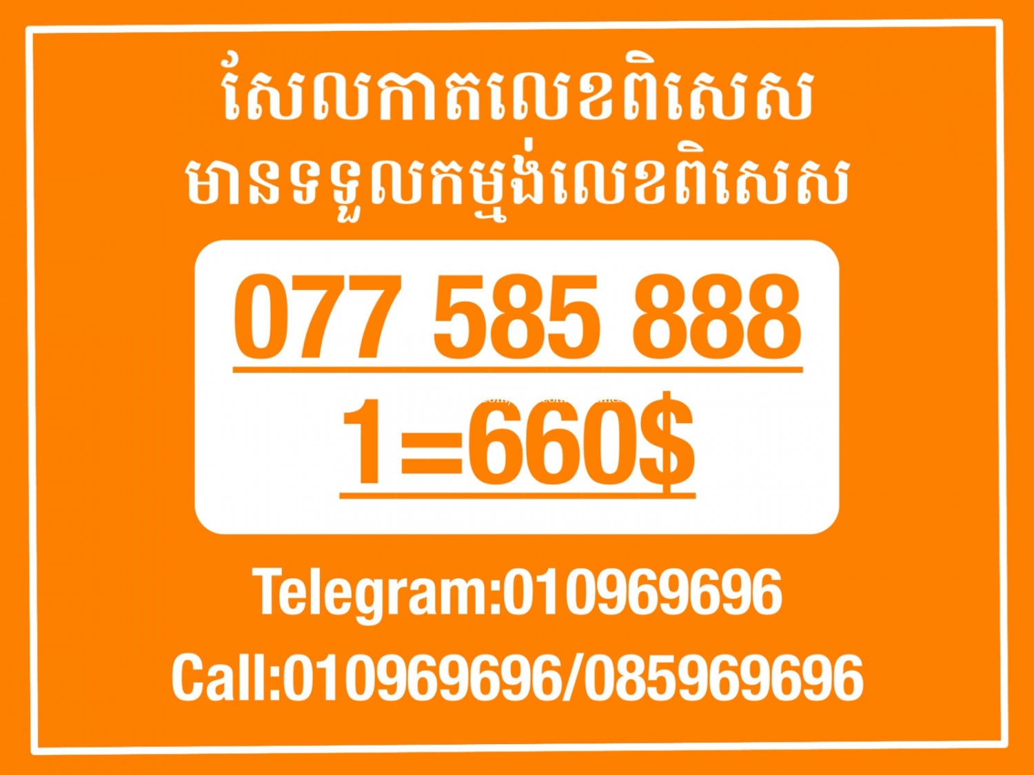 មានលក់លេខពិសេស មានទទួលកម្មង់លេខពិសេស មានលក់ម៉ាស៊ីនព្រីនឡាបែល មានលក់ម៉ាស៊ីនព្រីនវិក័យប័ត្រ មានលក់សម្ភារៈប្រើប្រាស់ក្នុងគ្រួសារ Smart Prime II 1=30$ Smart hero 1=40$ ទូរសព្ទថ្មីក្នុងប្រអប់ លក់ធូរៗរហូតអស់ពីស្តុក អាចប្រើជាឧបករណ៍សម្រាប់ស៊ែរ wifi បាន ទំនាក់ទំនង(ខ្មែរ | English | 中文):010969696 | 085969696 Telegram: https://t.me/W9696 Telegram group: https://t.me/konkonnada អាសយដ្ឋាន:ផ្ទះលេខ២៣ ផ្លូវបេតុងលេខ១ ភូមិទួលពង្រ សង្កាត់ចោមចៅ ខណ្ឌពោធិ៍សែនជ័យ រាជធានីភ្នំពេញ ទីតាំង https://goo.gl/maps/8moqW4iTHUfJEvWQ9 ដើម្បីស្វែងរកលេខអាជីវកម្មដែលលោកអ្នកពេញចិត្ត សូមចូលទៅកាន់:https://www.khmer24.com/Welcome-onlineshop