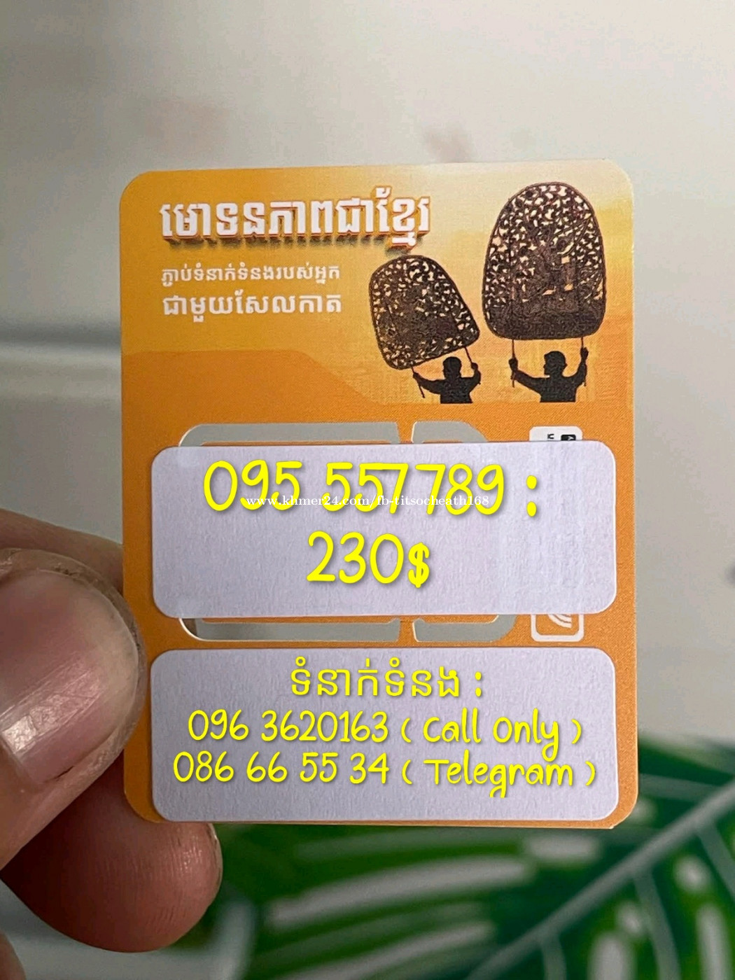 CELLCARD : 095 557 789 : 230$ មានចំណាប់ក្រោមអាចទាក់ទងមកលេខ : 0963620163 ( Call Only ) 086665534 ( Telegram)