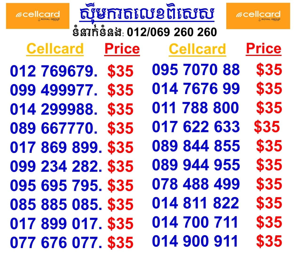 Cellcard លេខហុងស៊ុយ លេខនាំសំណាង។