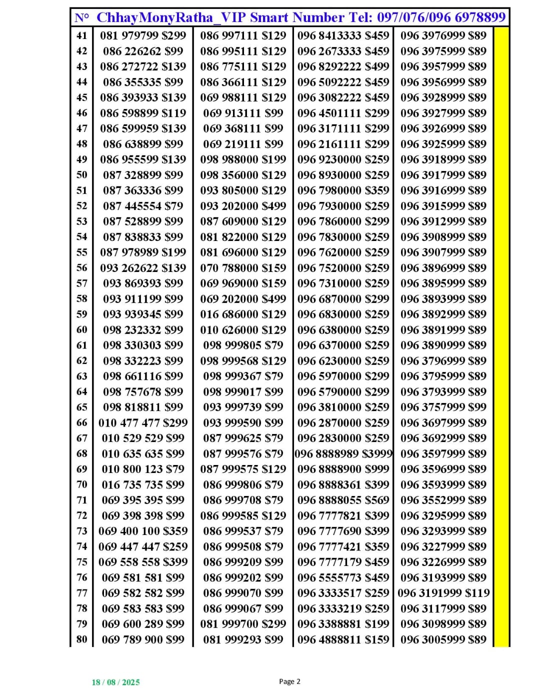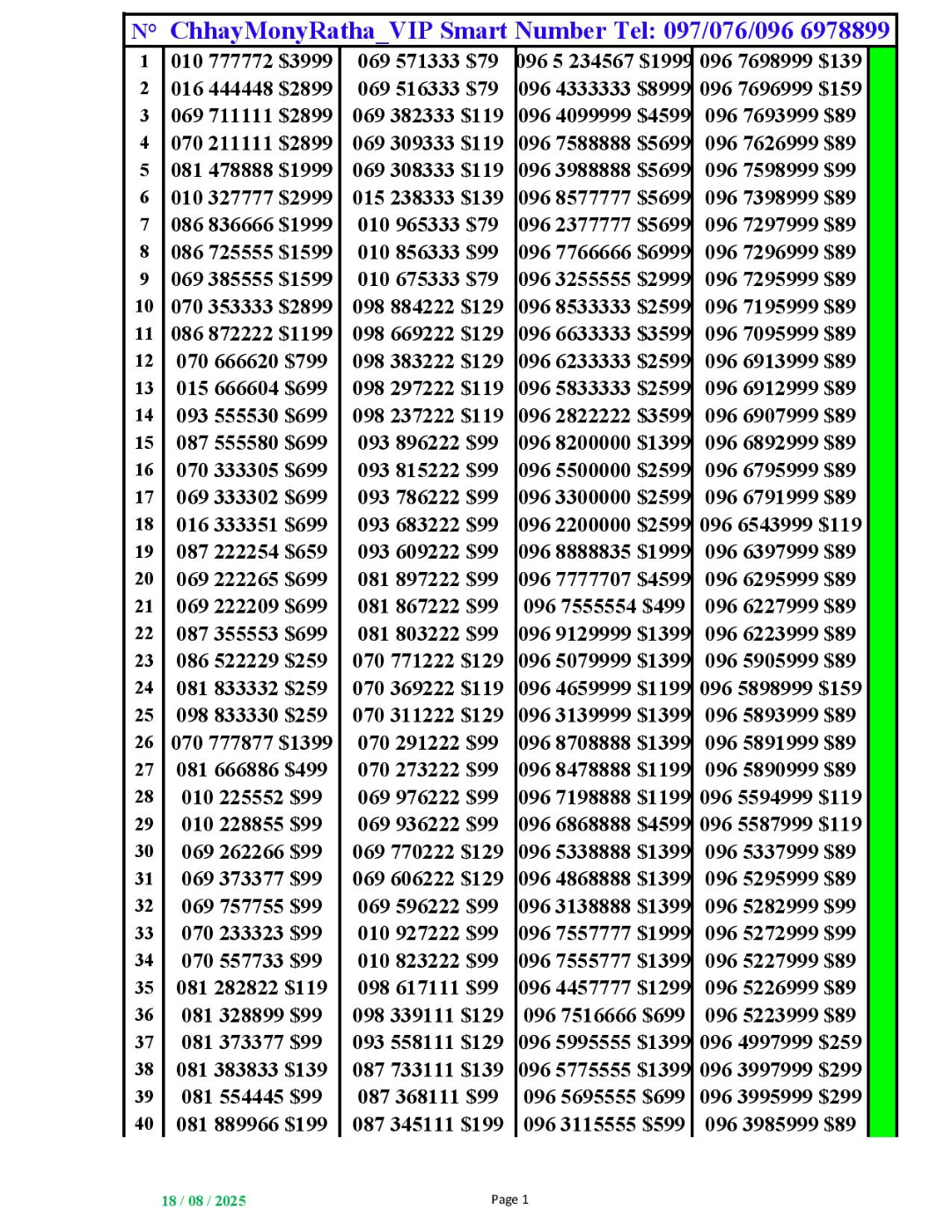 16%OFFFree Delivery80964333333 0964099999 0967588888 0962377777 097766666 0963255555 0966633333 0962822222 0968200000Just now • Por Senchey, Phnom Penh .$217.56$259