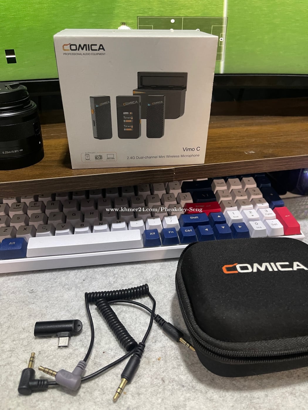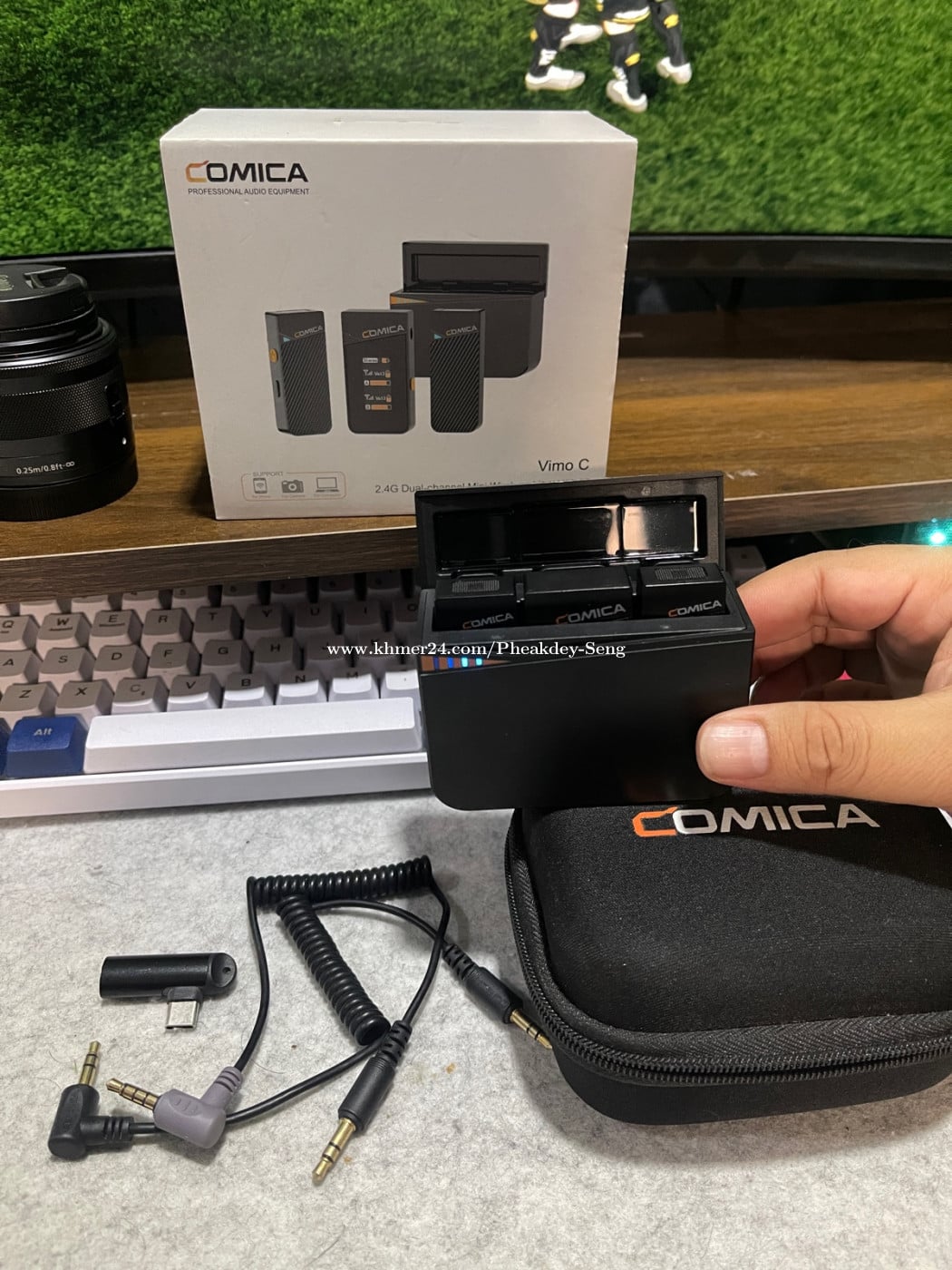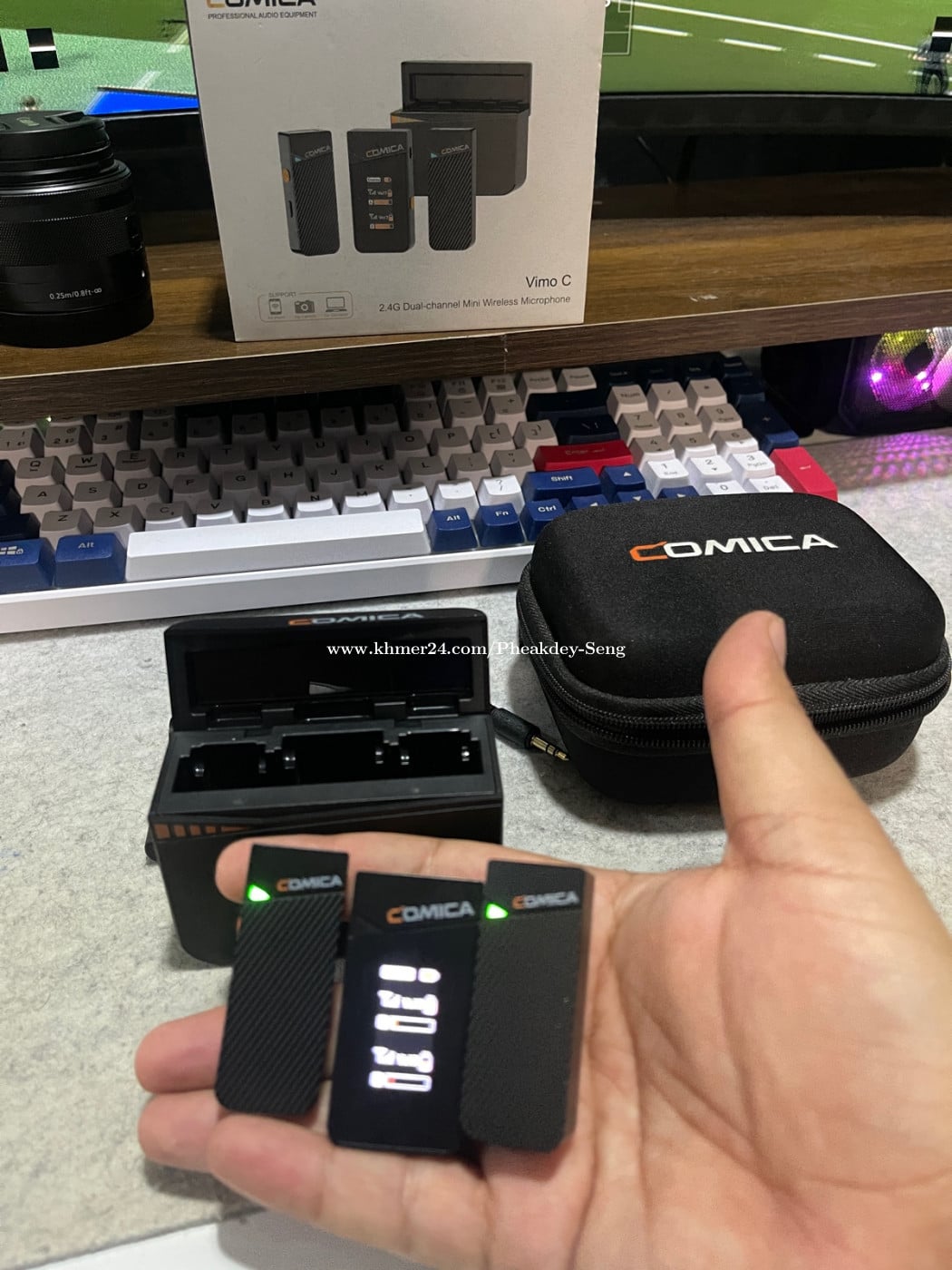 Comica Vimo C3 ជាប្រភេទ Microphone Wireless គុណភាពសម្លេងល្អ អាចប្រើជាមួយបានទាំងកាមេរ៉ា ទូរស័ព្ទ Computer ចំងាយ 200ម៉ែត ថ្មកាន់ដល់ទៅ 8ម៉ោង ✅ មានរូបរាងតូច ស្រាល ស្រួលយកតាមខ្លួន❤️ មានប្រព័ន្ធកាត់បន្ថយសំលេងរំខានផងដែល🎙 នៅស្អាតដំណេីរការល្អធម្មតា