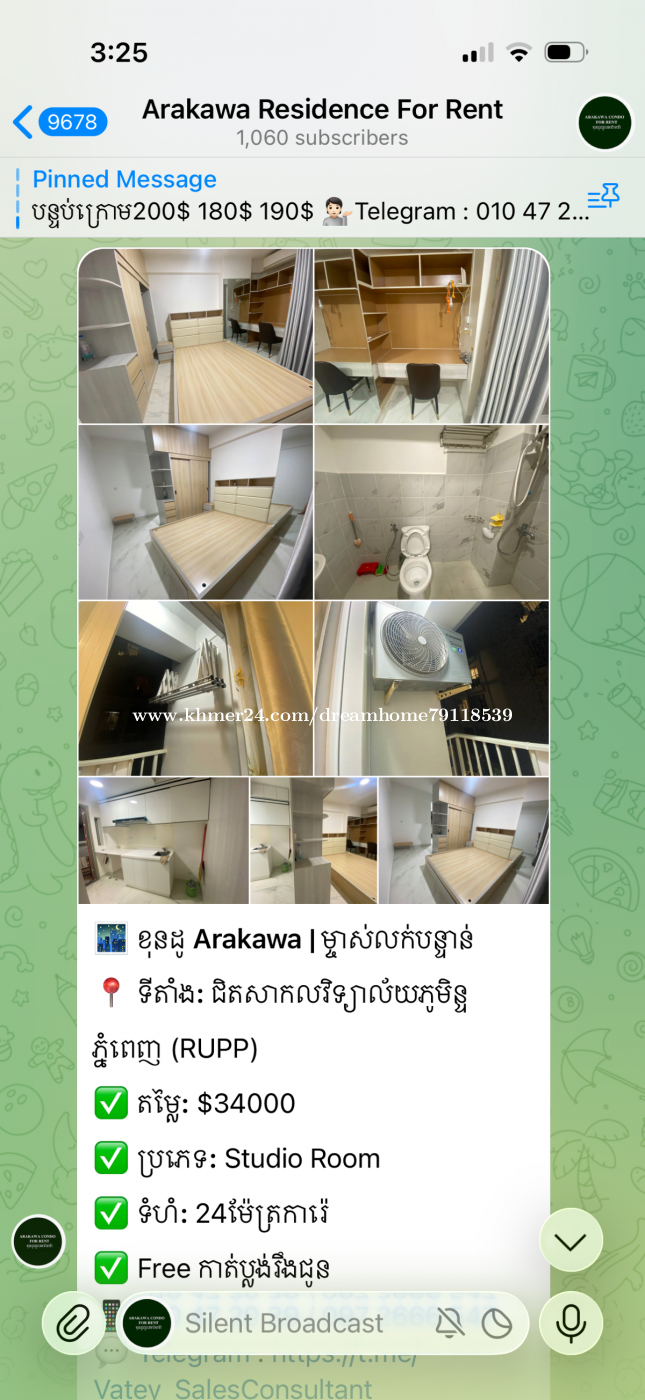 🌃 ខុនដូ Arakawa | ម្ចាស់លក់បន្ទាន់ 📍 ទីតាំង: ជិតសាកលវិទ្យាល័យភូមិន្ទភ្នំពេញ (RUPP) ✅ តម្លៃ: $34000 ✅ ប្រភេទ: Studio Room ✅ ទំហំ: 24ម៉ែត្រការ៉េ ✅ Free កាត់ប្លង់រឹងជូន 📱 010472xxxClick To Call / 0972666xxxClick To Call 💬 Telegram : https://t.me/Vatey_SalesConsultant 📢 Channel : https://t.me/Arakawaresaleandrental