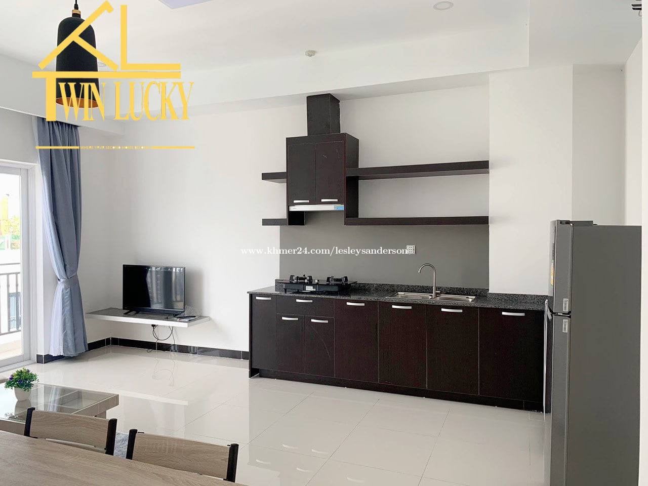 Features : Water 5$ per person/per month Electric 0.25$ per kWh Cleaning service twice a week 24h security Emergency exit Fire Alarm WiFi Air conditioners Flat Screen TV with cable connection Wardrobe Bedsheets Bedside tables Fridge Sofa Dinning Table Washing Machine Microwave Gas stove Cabinet Swimming Pool (Best View in Town) Gym Parking (Bike & Motorbike)