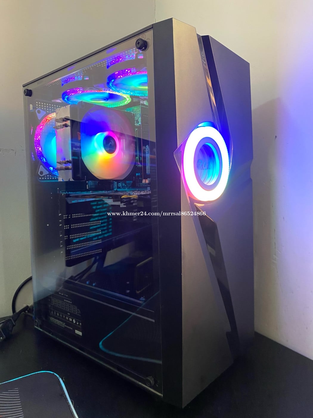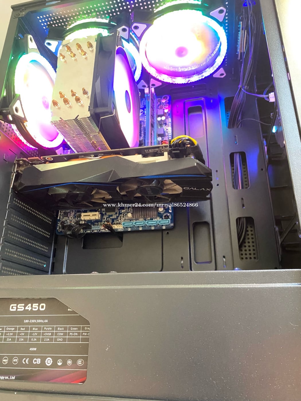 CPU : Intel Core i5-3570 (3.00GHz) MB : GIGABYTE H61M DS2 (3rd Gen) RAM : SAMSUNG DDR3 8G (1600MHz) SSD : TeamGroup 128G (Window10) HDD : SEAGATE 500G (Drive D) PSU : SAMA Gs 450W (Orginal Full) CASE : Ruix ATX GAMING (កញ្ចក់ចំហៀង) FAN CPU : Sesonic 120(RGB Rainbow) FAN CASE : DC Cooler (RGB RemoteX3) GPU : GALAXY GTX 960 2G OC (GDDR5)