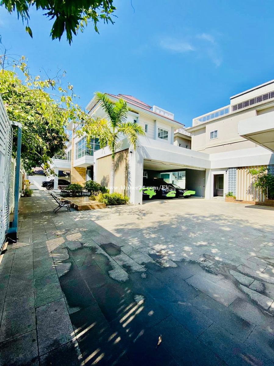 Corner & Modern Queen Villa for rent in Peng Houth Beung Snor Rental Price: $8,000/month Land Size: 33m x 23m House Size: 12m x 12m Beds: 06 Bedrooms