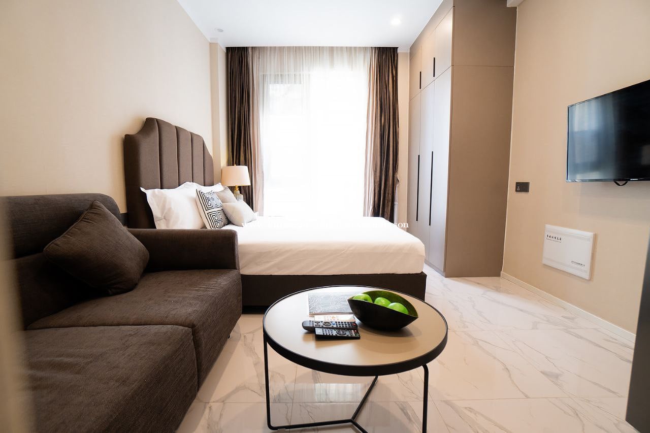 Unit Studio room Price: $ 660 -780/month Size: 32sqm Floor: 5th -16th Floor Included Amenities: - Fully furnished with modern fixtures. - Enjoy Cable TV and high-speed wireless internet access. - Access to the children’s playground, gym, and residence lounge at the clubhouse. - Dive into relaxation with our resort-style swimming pool. - Housekeeping services and linen change provided once a week. - Kids have full access to indoor and outdoor playgrounds. - 24/7 security surveillance and CCTV monitoring. - Around-the-clock support from our dedicated service and engineering team. Additional Charges: - Electricity: USD 0.25 per kWh (applicable for monthly stays). - Water supply: USD 0.75 per ton. - Secure parking available for $40 per car. - Payment Terms: Requires a two-month deposit and one-month advance rental.