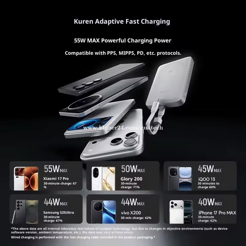 Power bank just release hurry up stock limit. Chuktech ***Color silver ***Wireless ***Type c input 55w ***Output 55w ***LCD display ***capacity 10000mah Hurry up Christmas Promotion Hot sale popular product 59$ discount 39$ (5 in stock )