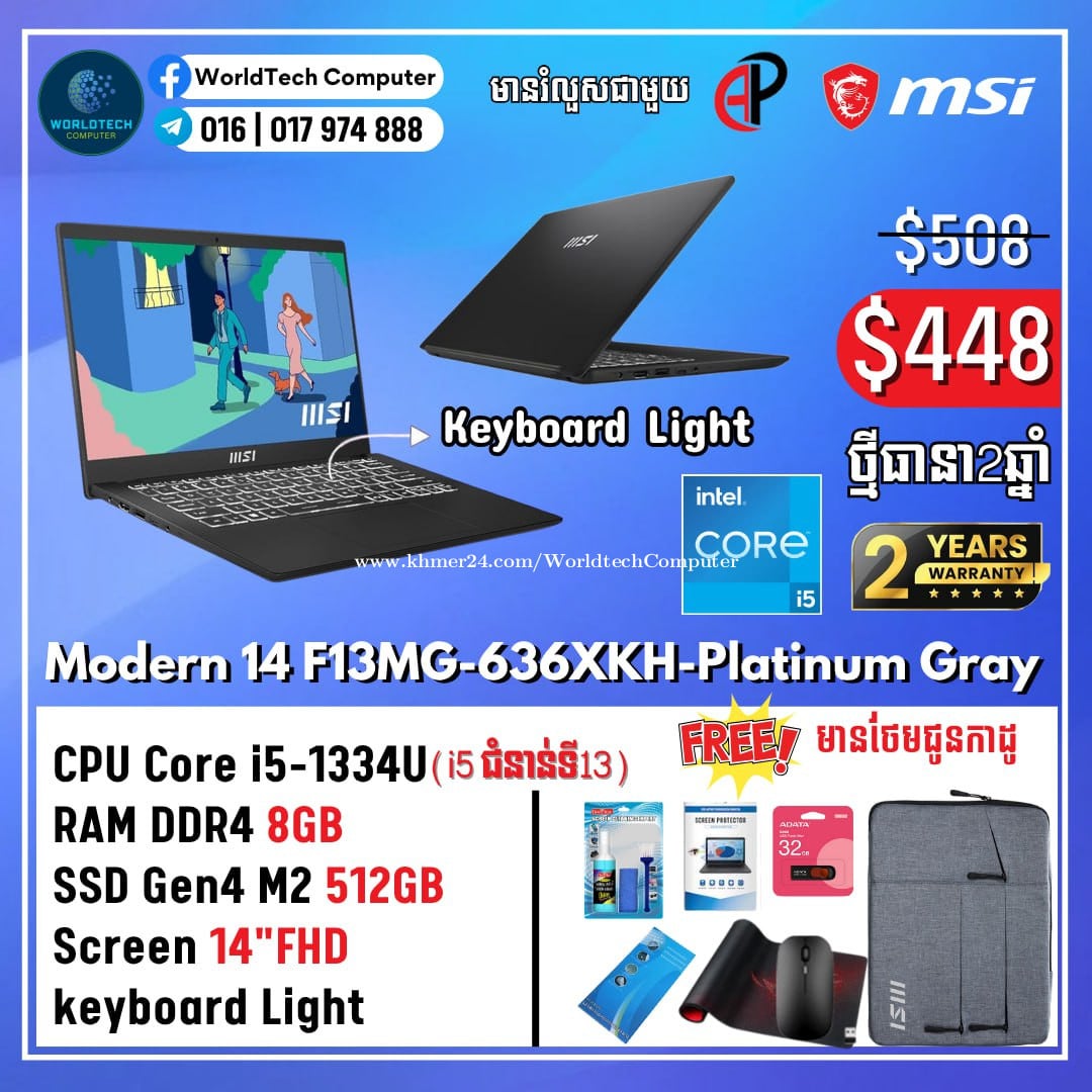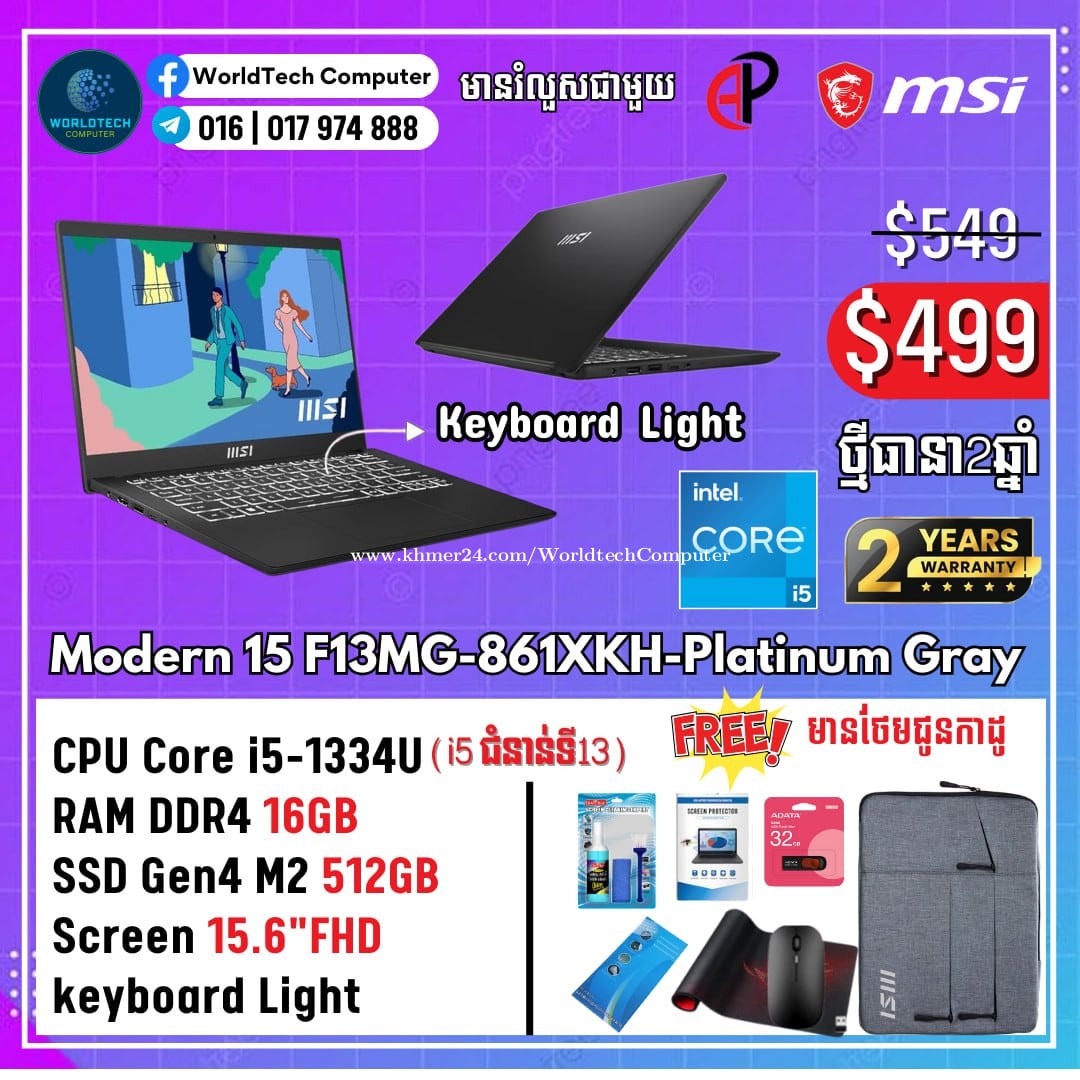 New (Gaming+Design) 2025 ធានា2ឆ្នាំ Warranty 2years from MSI Cambodia Cyborg15 i5-13420H 8G M2 512GB RTX3050 4G 15.6" 144Hz New=649$ Cyborg15 i5-13420H 16G M2 512GB RTX3050 4G 15.6" 144Hz New=699$ Cyborg15 i7-13620H 16G M2 512GB RTX3050 4G 15.6" 144Hz New=749$ Cyborg15 i7-13620H 16G M2 512GB RTX4050 6G 15.6" 144Hz New=899$ Cyborg15 i7-13620H 16G M2 1TB RTX4050 6G 15.6" 144Hz New=949$ Cyborg15 i7-13620H 16G M2 512GB RTX5060 8G 15.6" 144Hz New=1049$ Cyborg17 Cyborg17 i7-13620H 16G M2 512GB RTX5050 8G 17.3" 144Hz New=1049$ Cyborg17 i7-13620H 16G M2 512GB RTX5060 8G 17.3" 144Hz New=1199$ Telegram: 017974xxxClick To Call , 011777xxxClick To Call ទីតាំងហាង: ផ្ទះ39Eo ផ្លូវ257 ទឹកល្អក់3 ទួលគោក ភ្នំពេញ (ខាងលិចស្តុបទេពផនប្រហែល 300ម)។ Location: #39E0 St257, Tuol Kouk , Tuek L'ak Bei , Phnom Penh