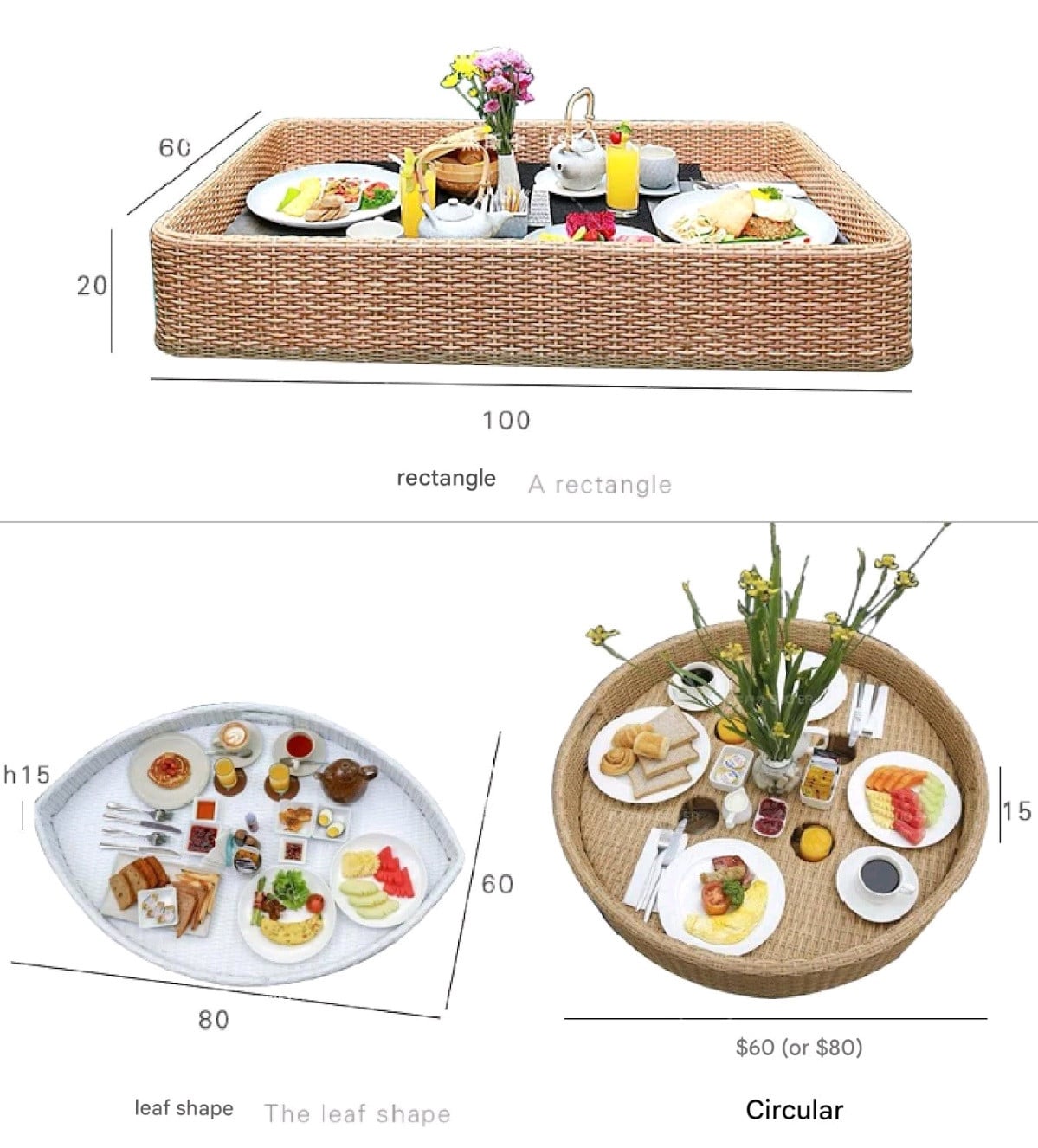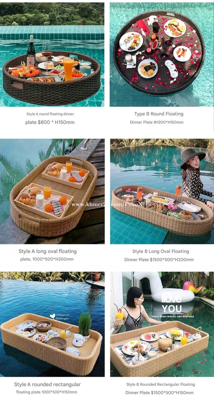 Floating rattan trays, floating breakfast baskets, guesthouses, hotels, villas, poolside Material: Rattan Dimensions: various sizes and shapes available $79.00 (Diameter: 60 cm, Height: 20 cm) 100 % new and packed Telegram @PrimX_PP