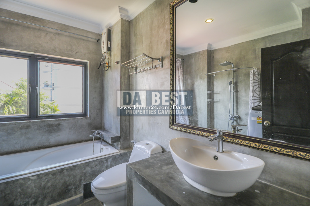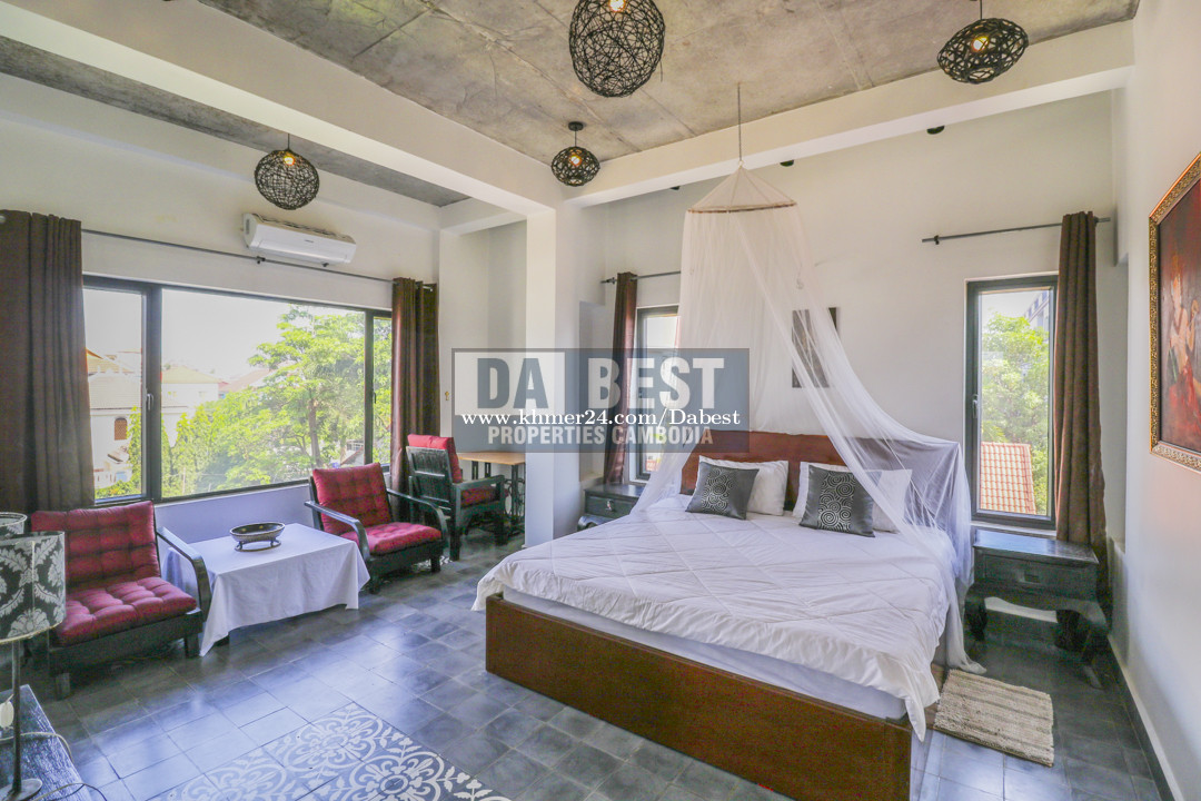 Contact DABEST Properties: 089899xxxClick To Call/061336xxxClick To Call Phone, Telegram, WhatsApp, WeChat, Line or Email. Property ID: SRA161 MORE DETAILS: • 1 Bedrooms with air-conditioner • 1 Bathrooms with hot shower • Fully furnished , Fast Wifi and Cable TV, Pool • Living area with Television and Sofa • Kitchen, Washing machine, fridge, gas cooker • Well connected to Old Market, Lucky Mall and Airport • Parking space • Located in Svay Dangkum