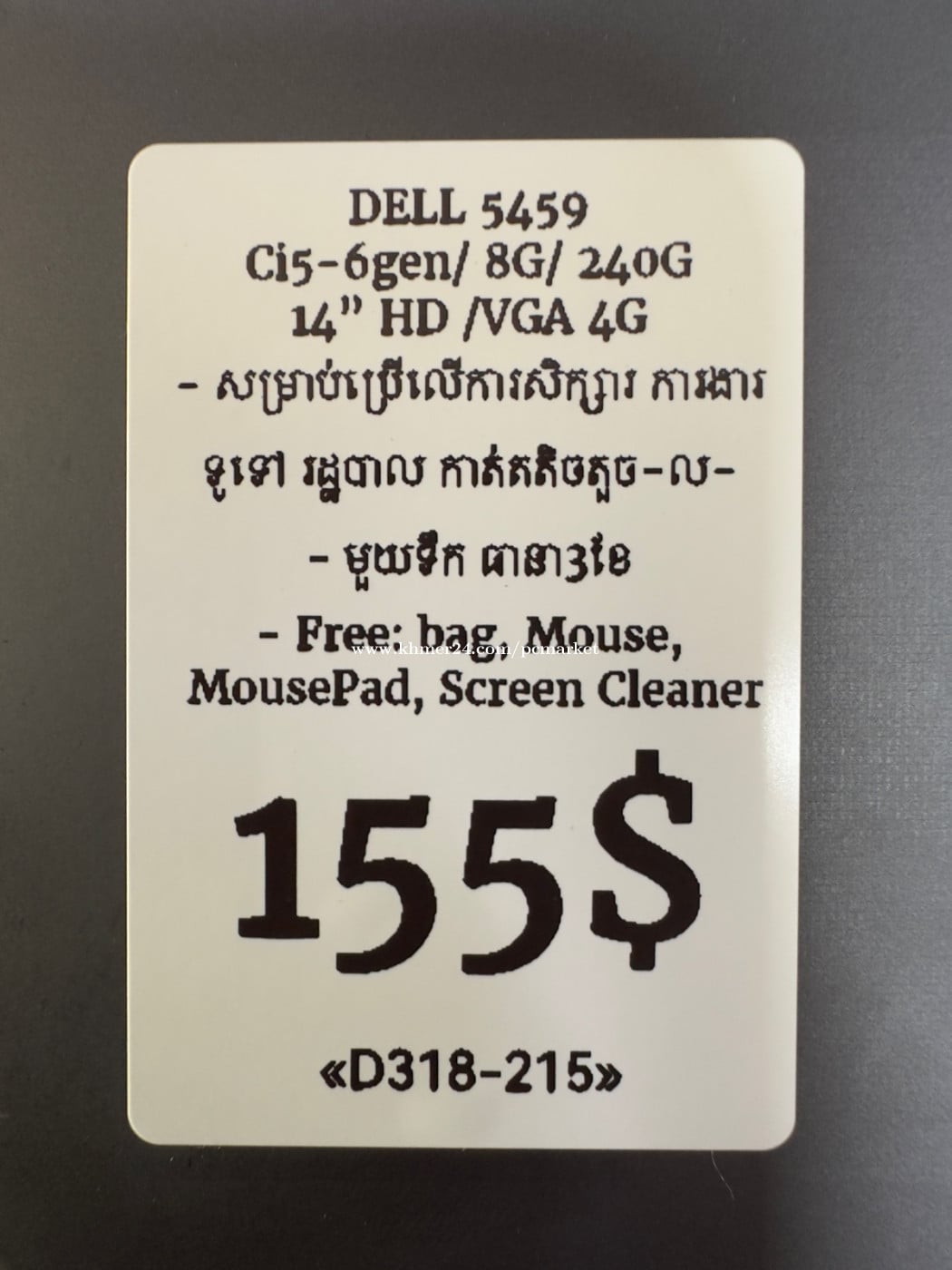 DELL 5459 Core i5ជំនាន់ទី6 RAM 8GB Storage 240GB 14” HD VGA 4G មួយទឹកស្រុកគេធានា3ខែ