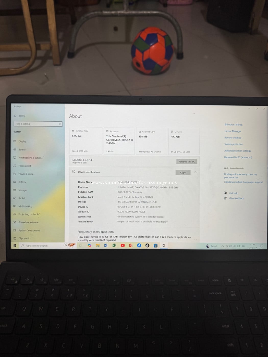 Dell Inspiron 3511 (study&working)។ តំលៃពិសេស 💕295$💕 👉ទូរសព្ទ័ 0883844xxxClick To Call/ 015853xxxClick To Call(telegram) 👉 ប្រើសំរាប់ ការរៀន អនឡាញ ផ្នែកគណនេយ្យ ការងារការិយាលយ័ ការងាររដ្ធបាលទូរទៅ ធ្វើកិច្ចការសាលា កាត់ត រូបភាព វិដិអូ កំរឹតបង្គួរ ។ល។ 👉Dell Inspiron 3511 specs as below: - CPU: Core i5 -1135G7 2.40GHz - VGA1: Intel(R) Iris(R) Xe Graphics - VGA2: Nvidia MX350 2G - Ram: 8G DDR4 - Hard Disk: 512G (SSD) - Screen: 15.6-inch (FHD) - WiFi / Webcam / Bluetooth - Condition: 98% new - Price: ✌️295$✌️