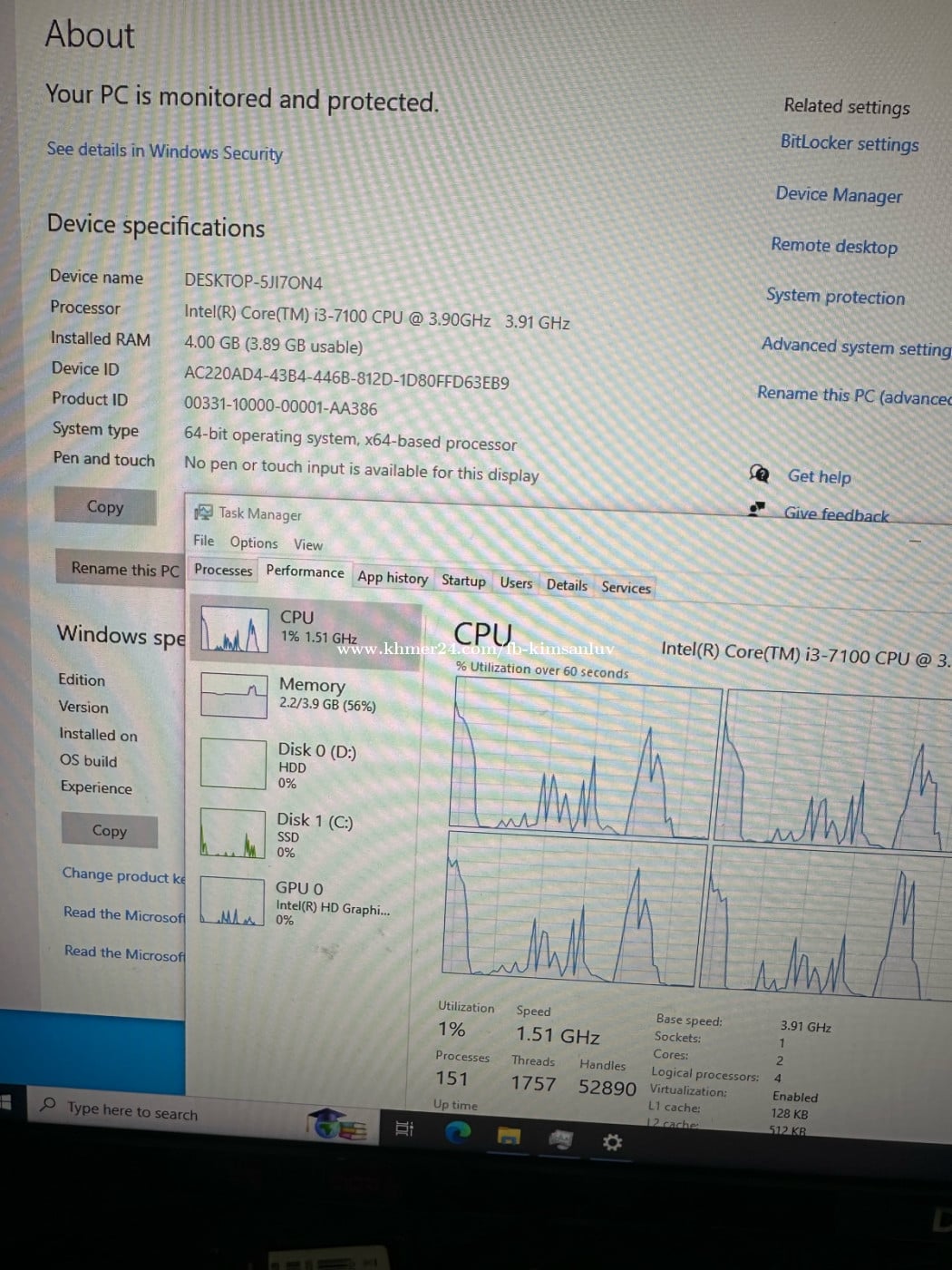 Dell optiplex 3050 95% *Good for office ,reply chat facebook and telegram, YouTube, typing - cpu 7100 - ram ddr4 4g - ssd 120g - hdd 500g - windows 10 pro ready to use ๐ฐ50$โ